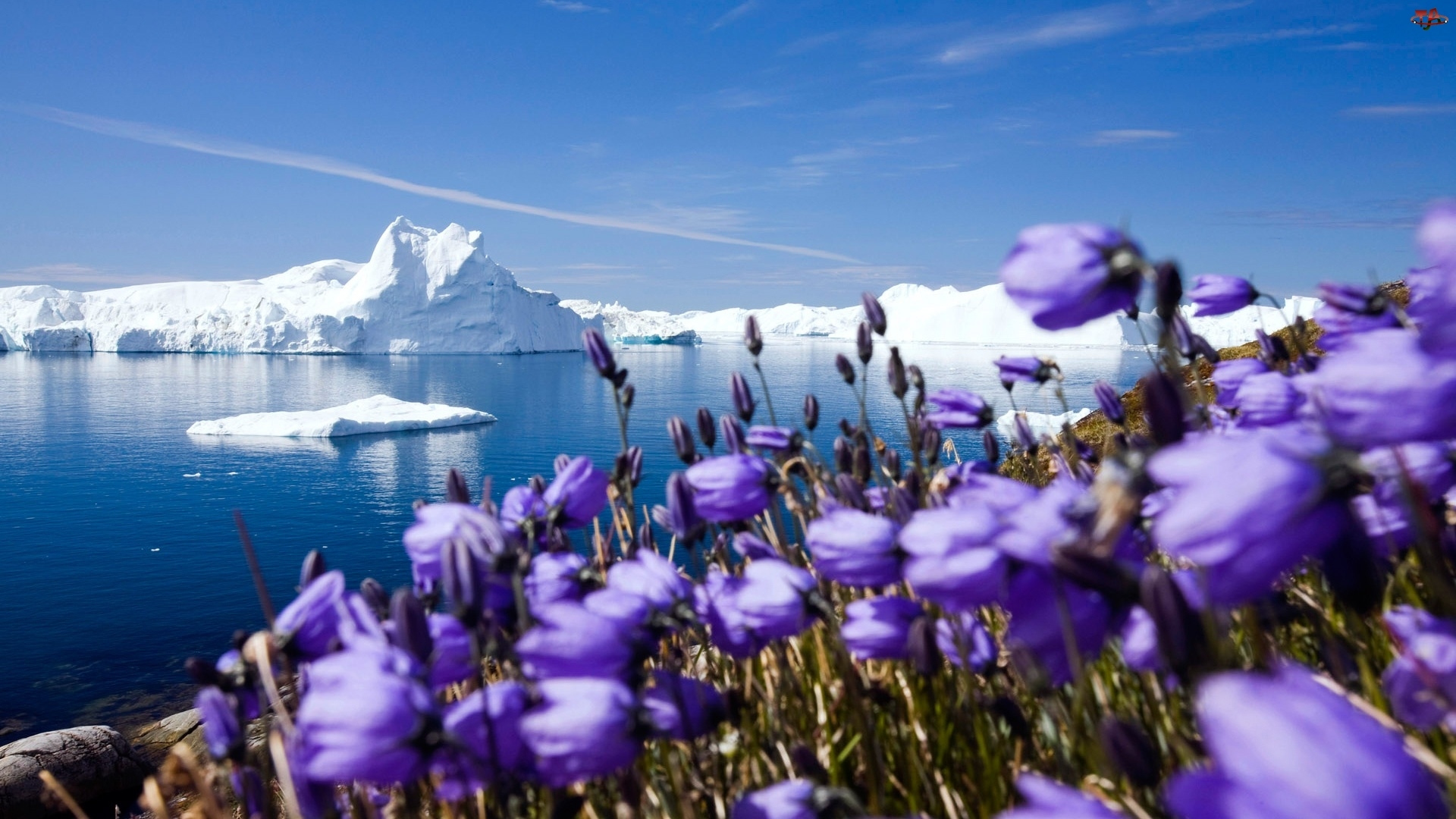 Kwiaty, Góry, Morze, Lodowe, Fioletowe
