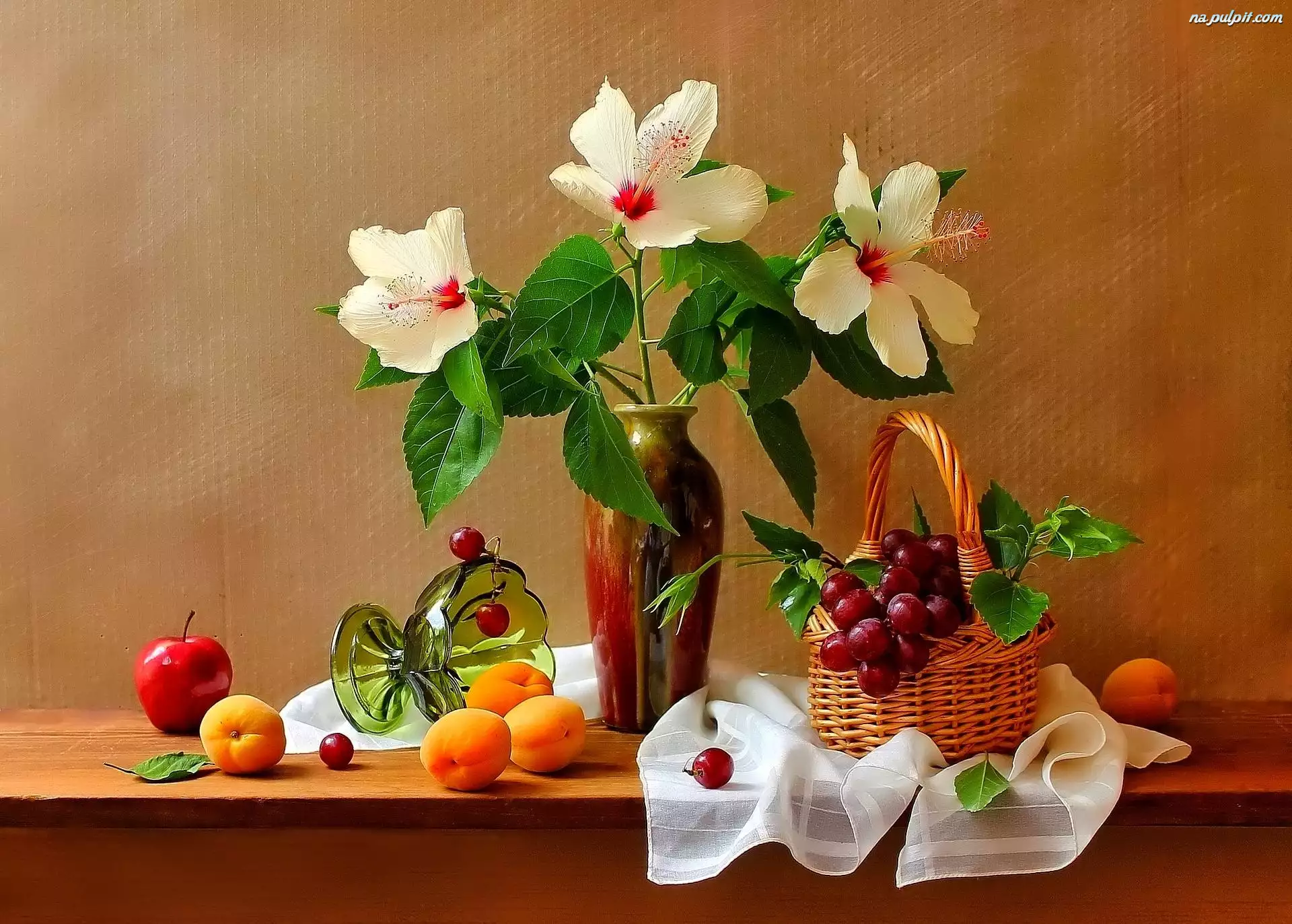 Kwiaty, Koszyk, Różne, Kompozycja, Owoce, Flakon