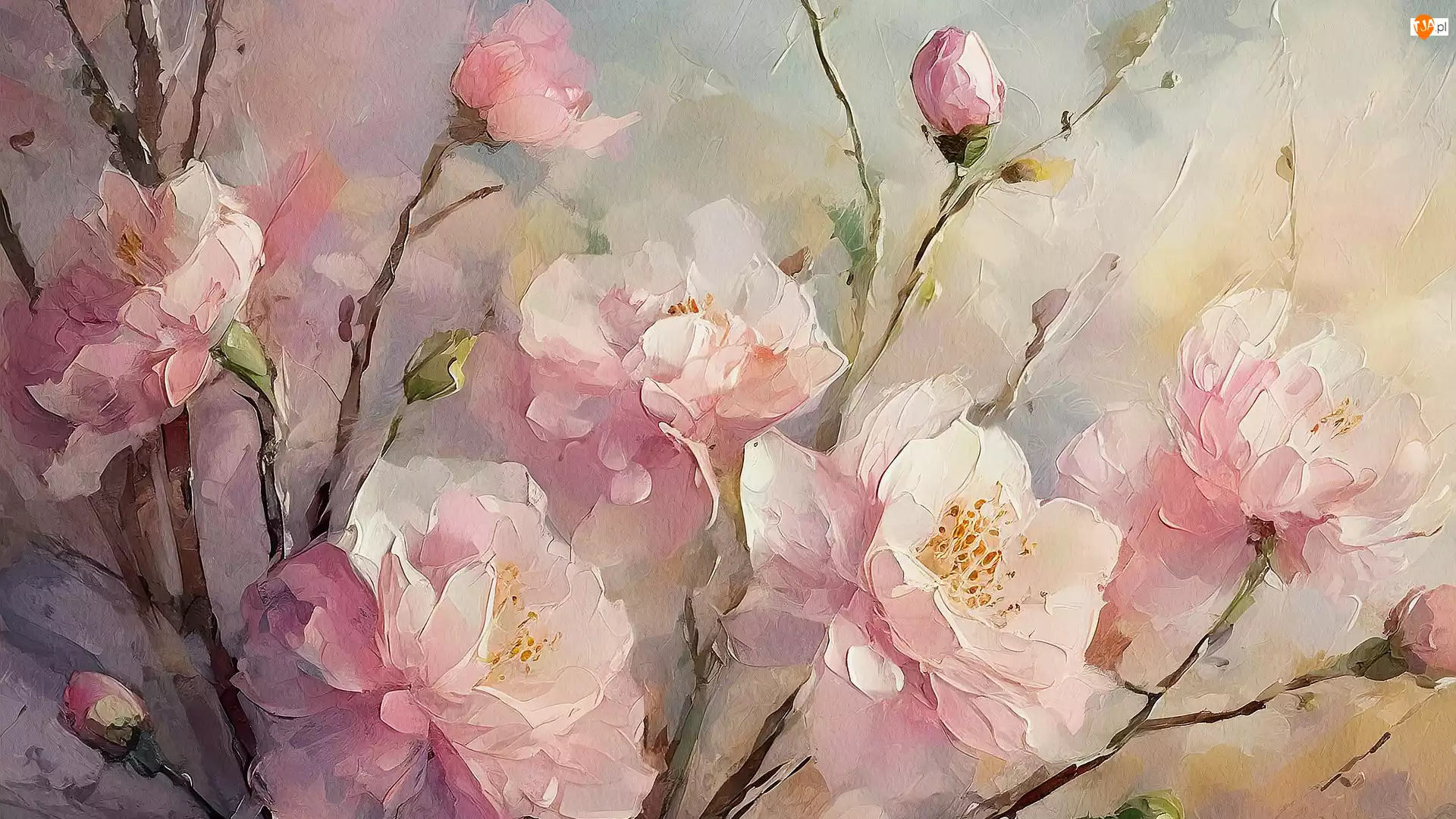 Kwiaty, Obraz, Malarstwo, Różowo-białe