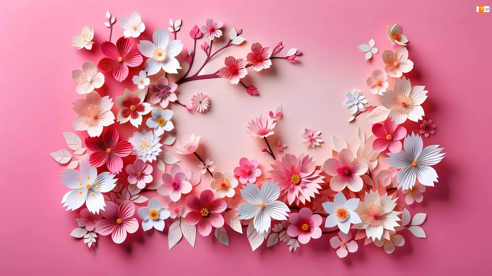 Kwiaty, Papierowe, Białe, Różowe
