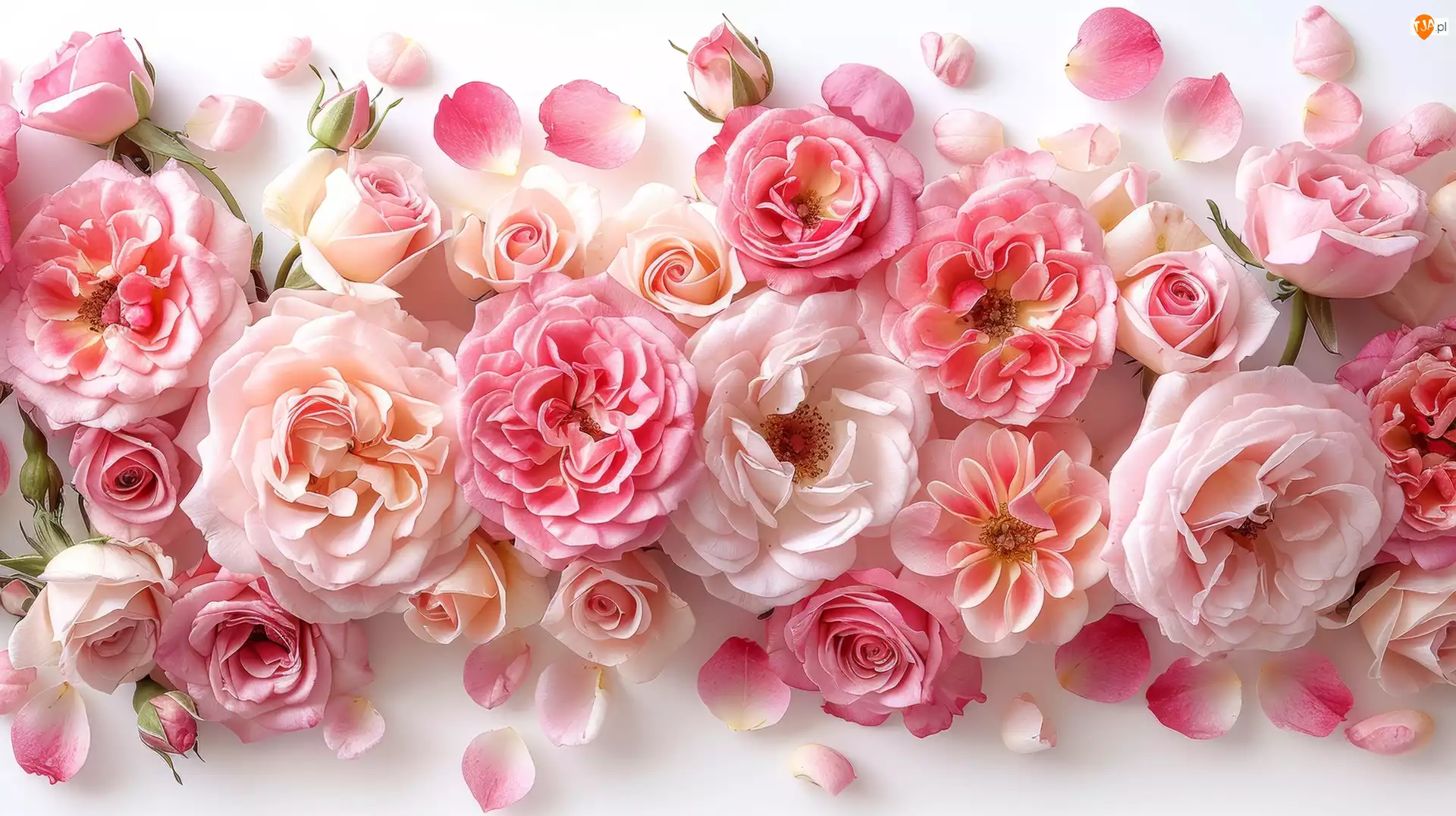 Kwiaty, Płatki, Różowe, Kompozycja, Róże
