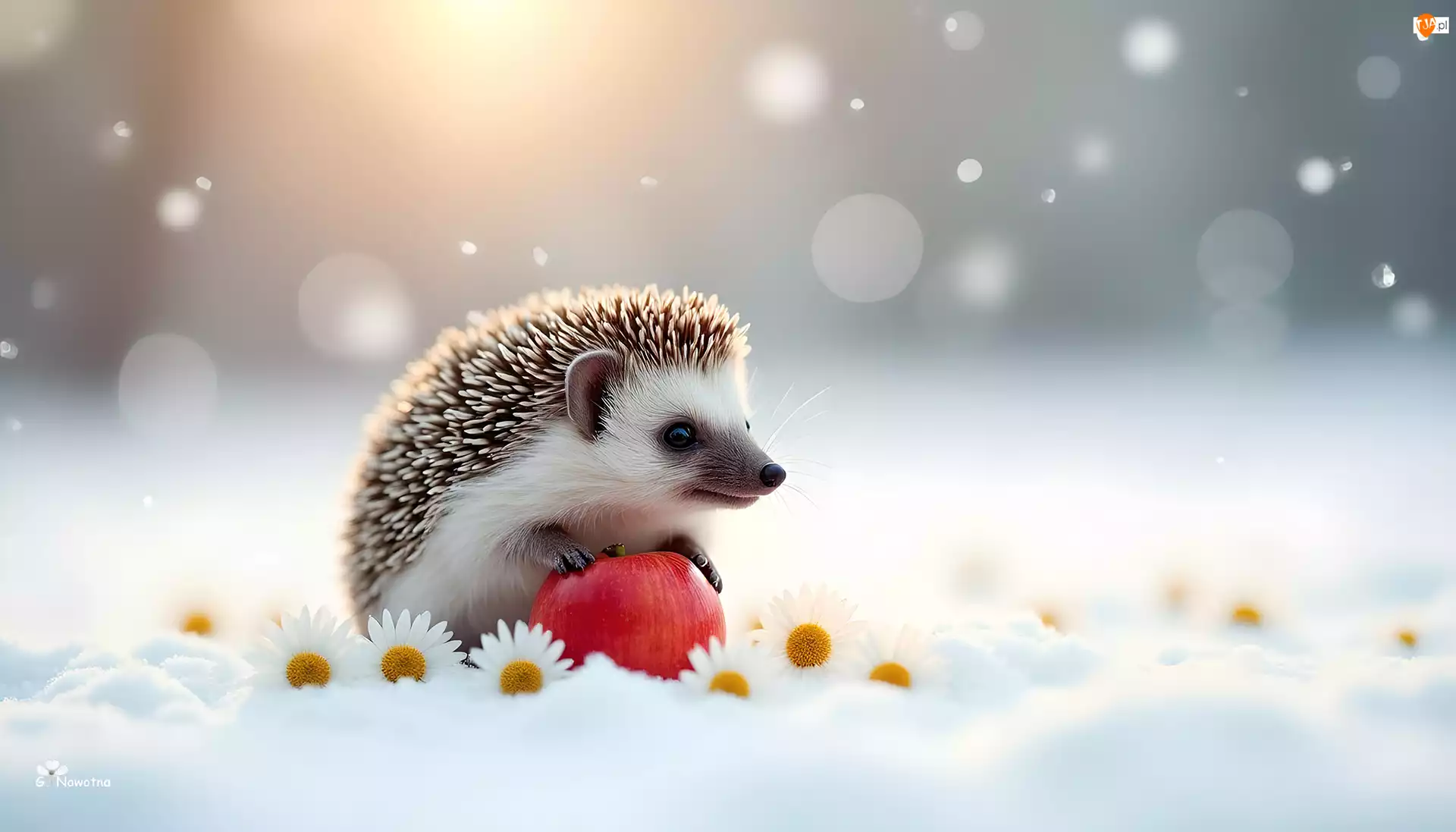 Kwiaty, Śnieg, Jabłko, Jeż, Grafika