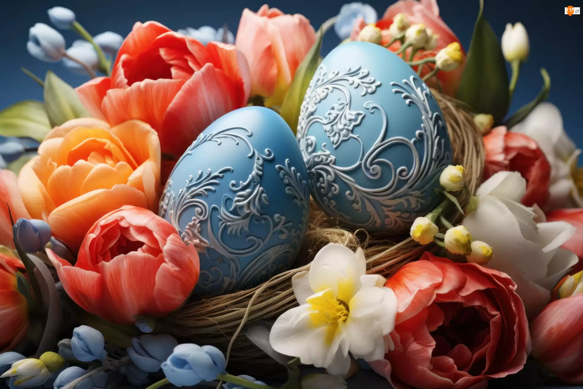 Kwiaty, Tulipany, Kompozycja, Grafika, Pisanki, Wi