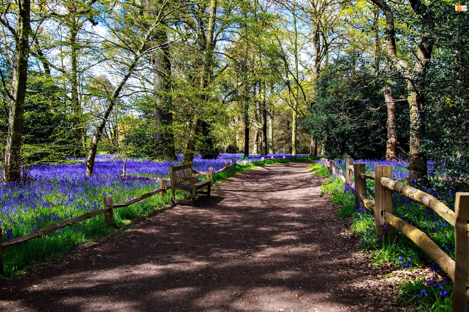 Kwiaty, Wiosna, Aleja, Park, Ławka