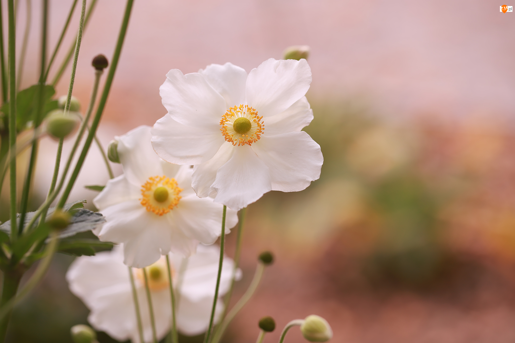 Kwiaty, Zawilce, Zbliżenie, Białe