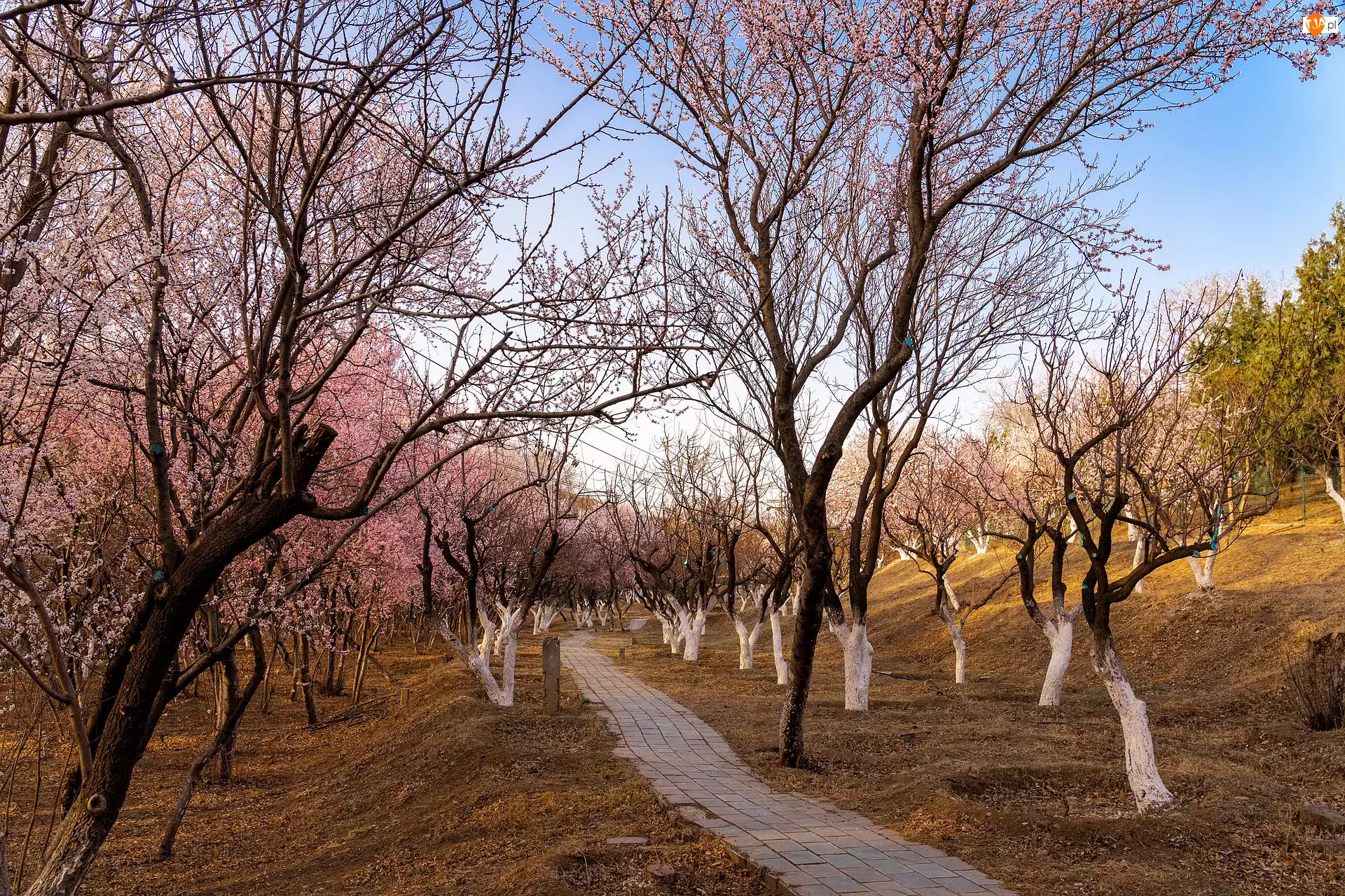 Park, Wiosna, Drzewa owocowe, Ścieżka