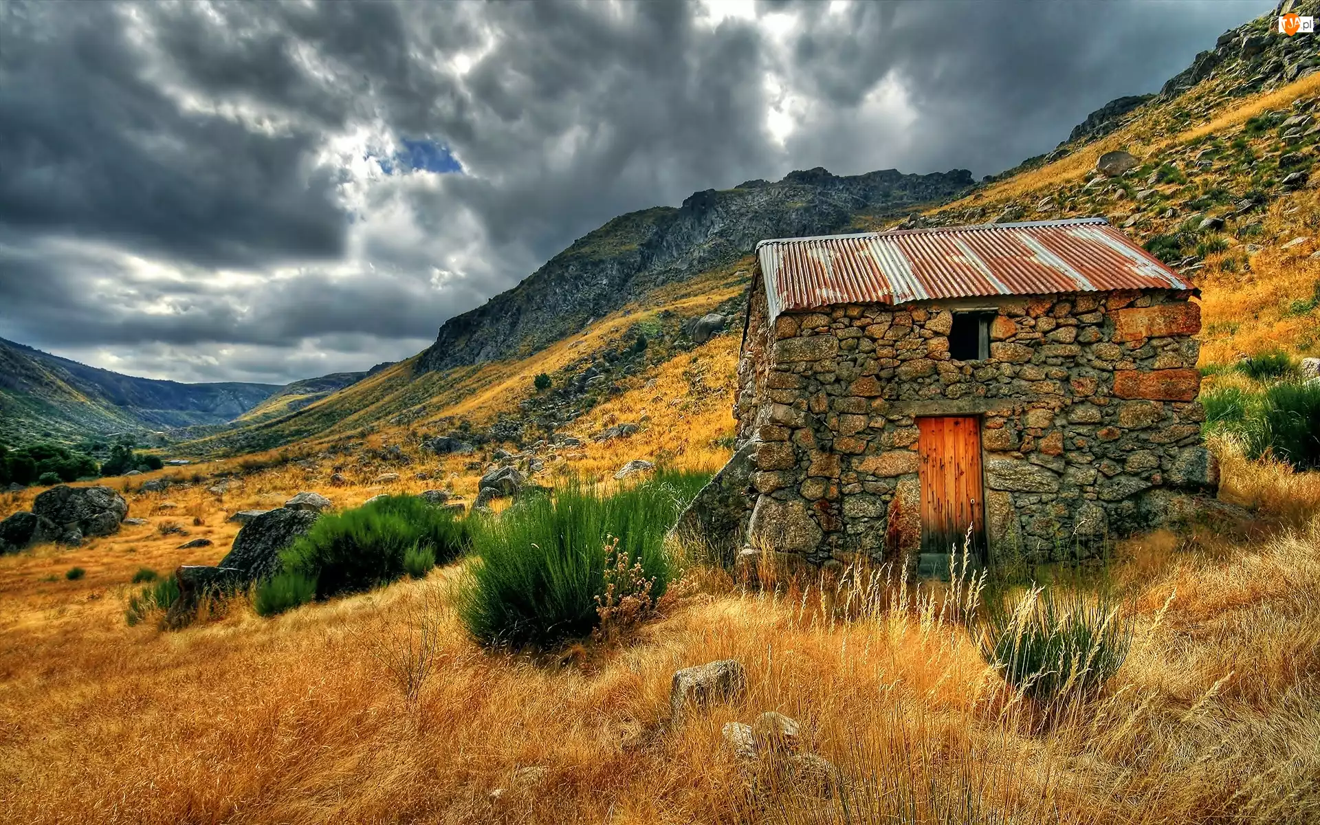 Łąka, Góry, Dom, Chmury, Kamienny, Ciemne