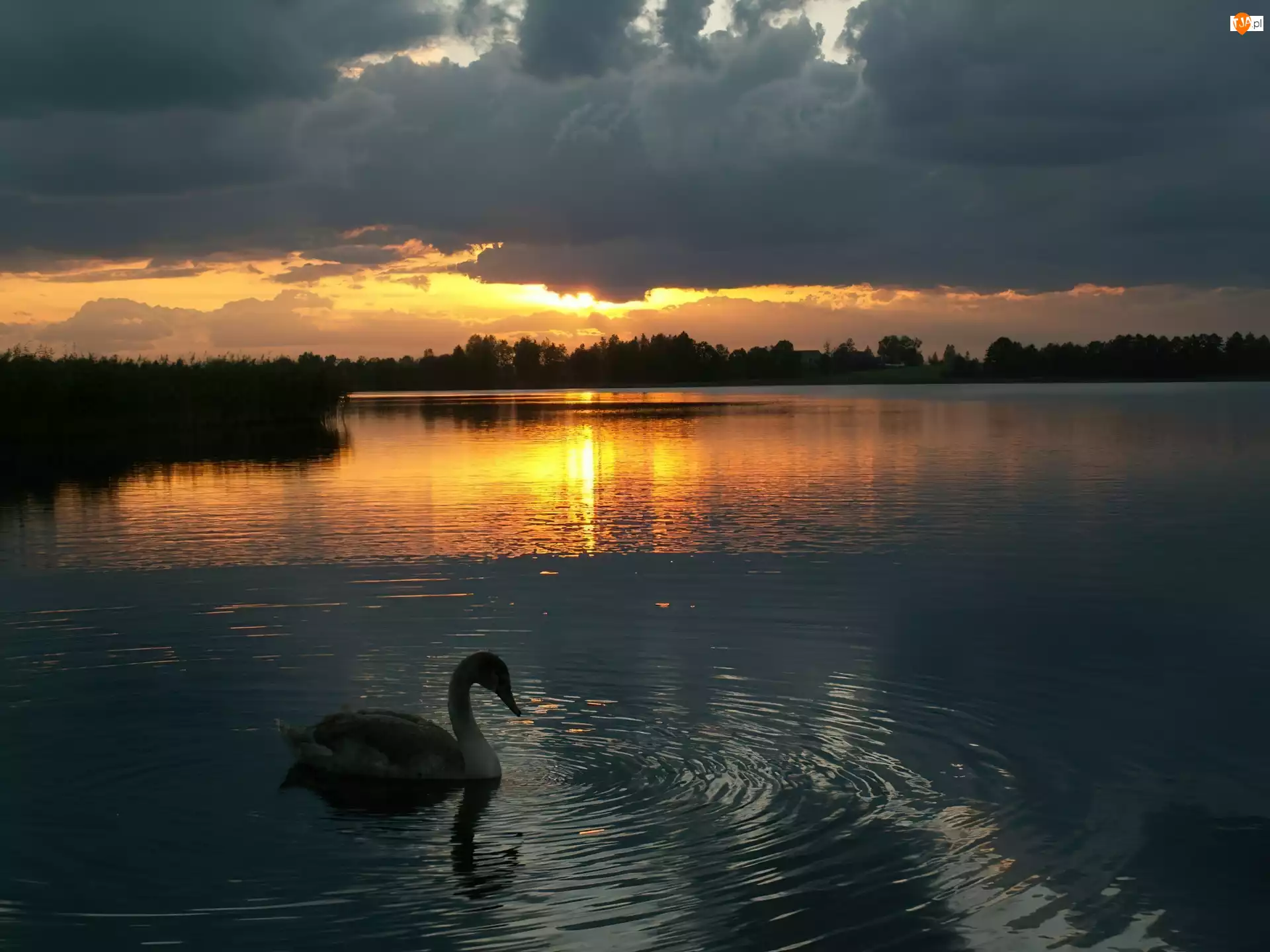 Słońca, Łabędź, Jezioro, Zachód