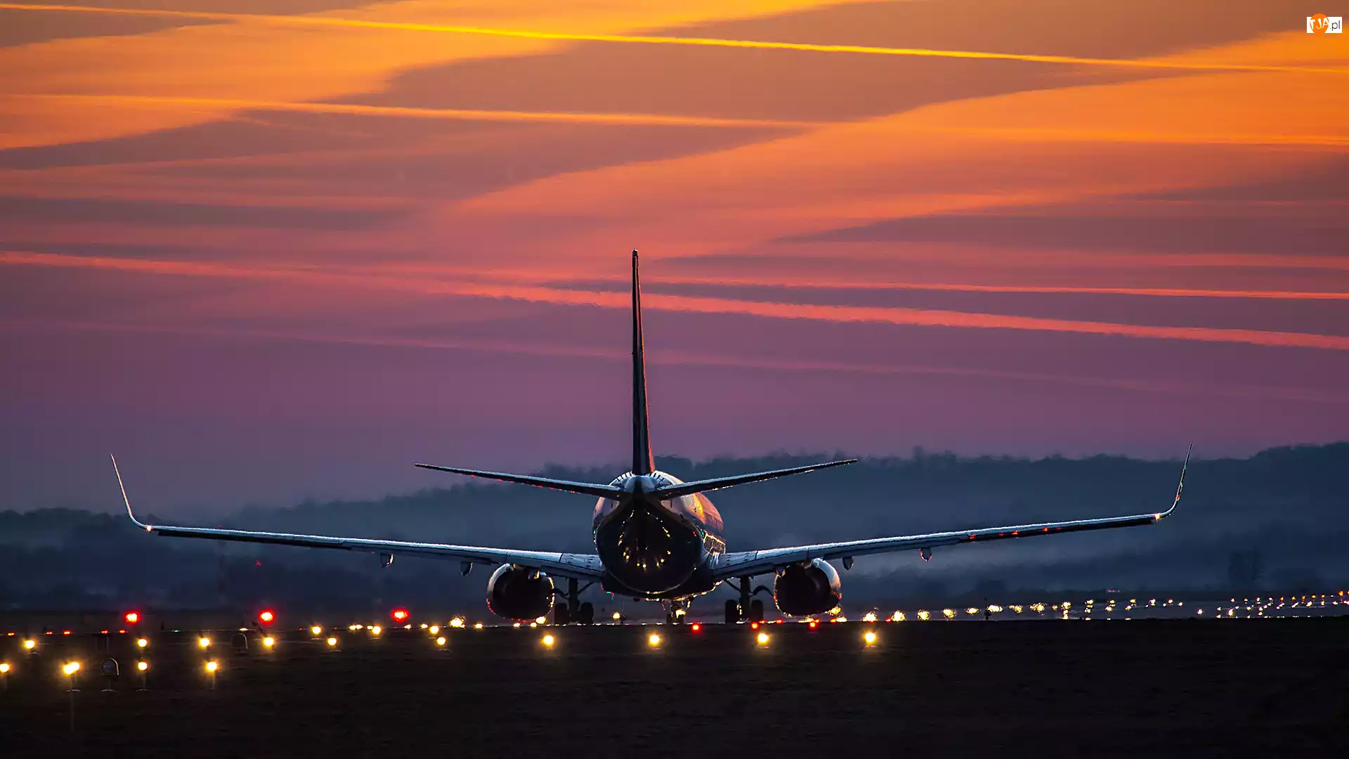 Zachód słońca, Samolot pasażerski, Pas startowy