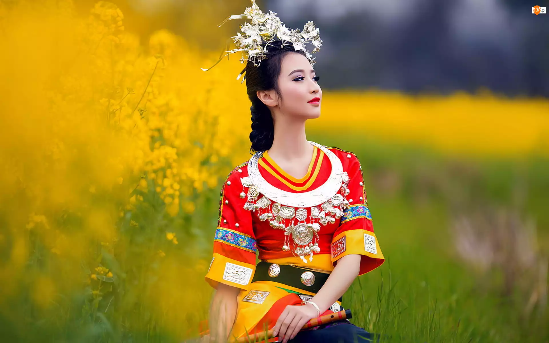 Łąka, Brunetka, Strój, Azjatka, Ludowy