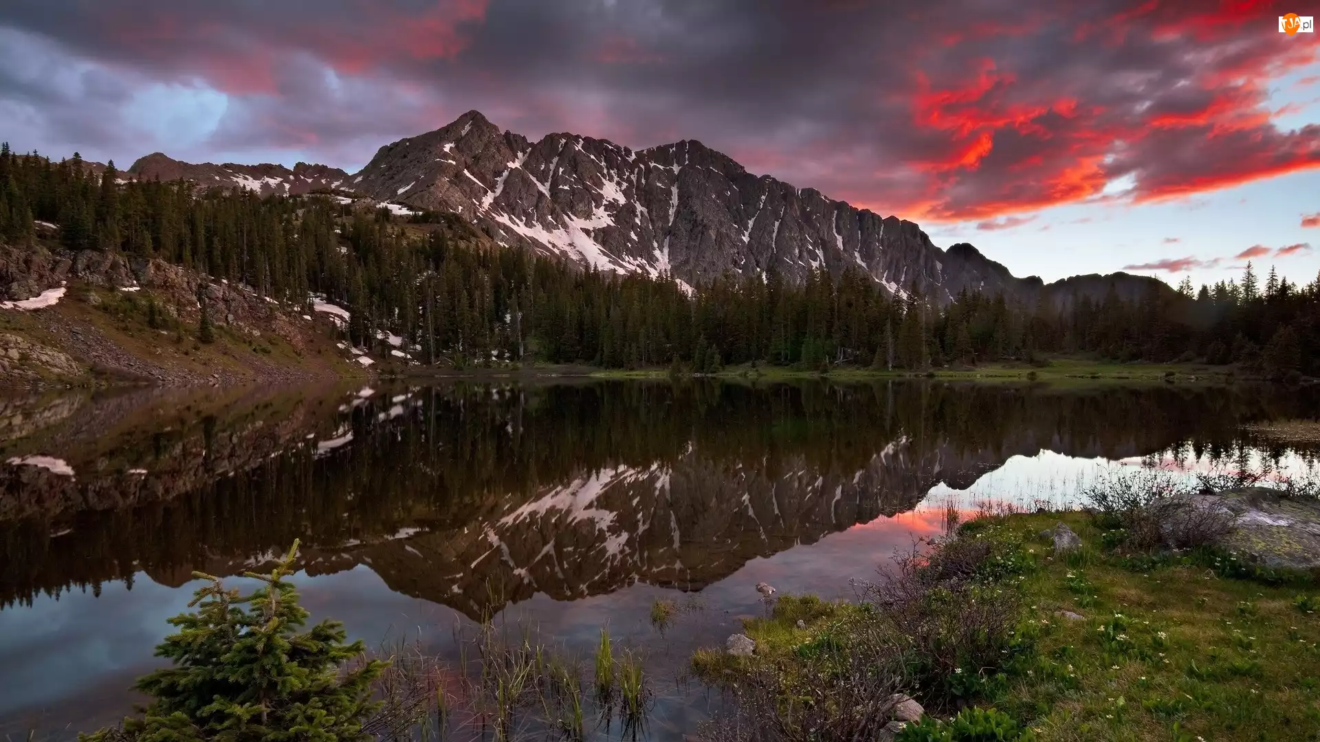 Góry, Łąka, Chmury, Czerwone, Rzeka