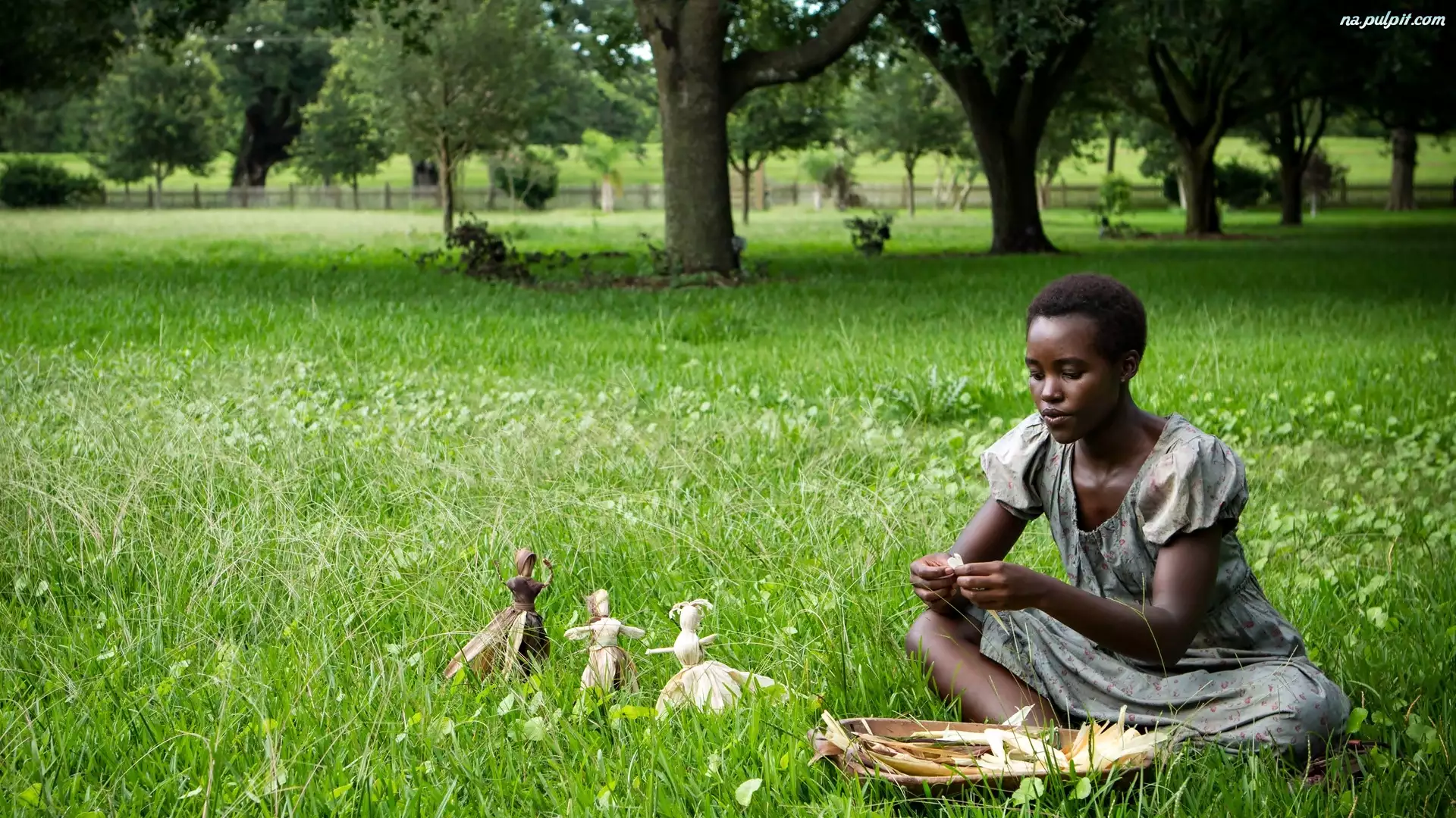 Łąka, Kobieta, Zabawki, Murzynka, Lalki
