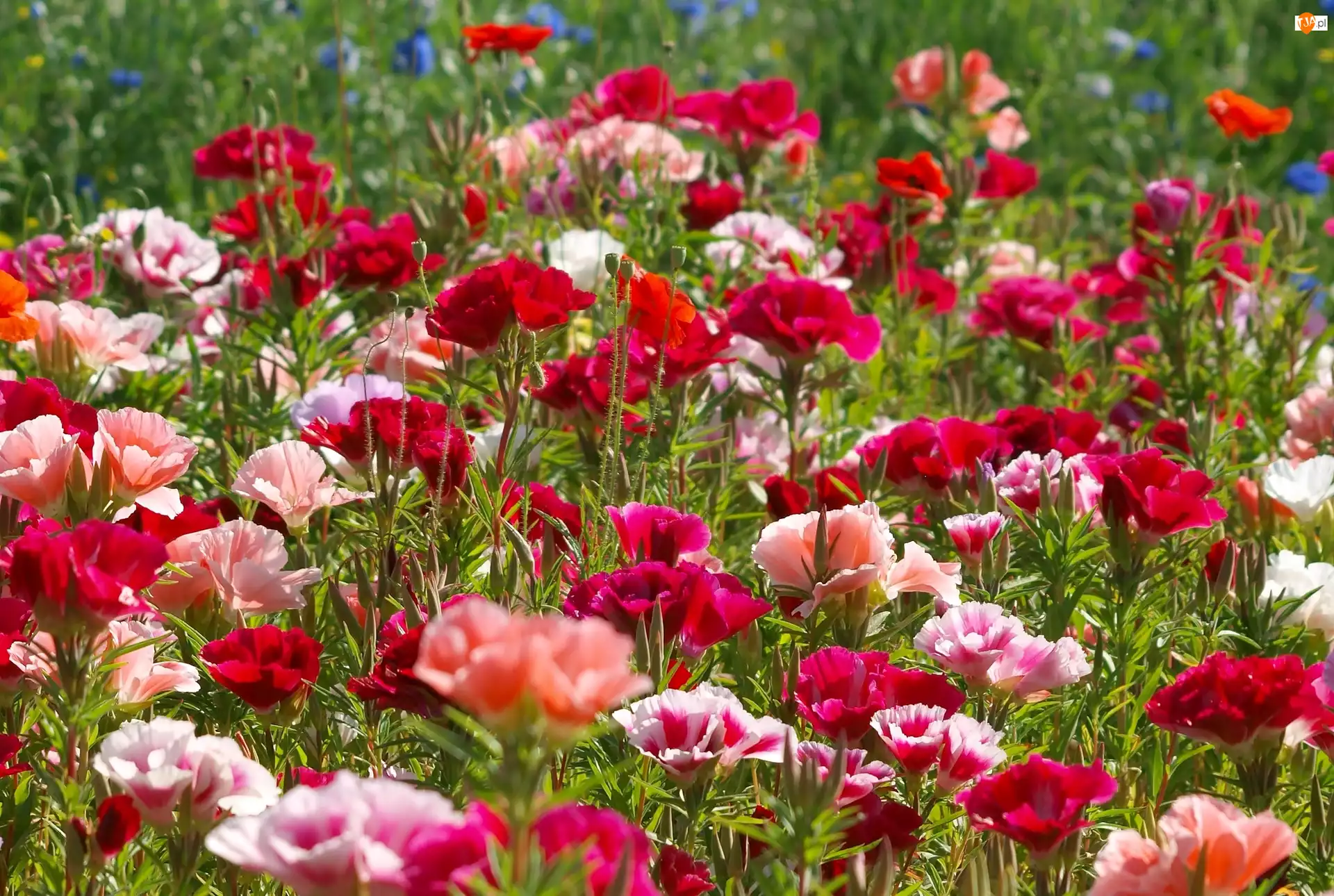 Łąka, Maki, Różnokolorowe, Kwiaty