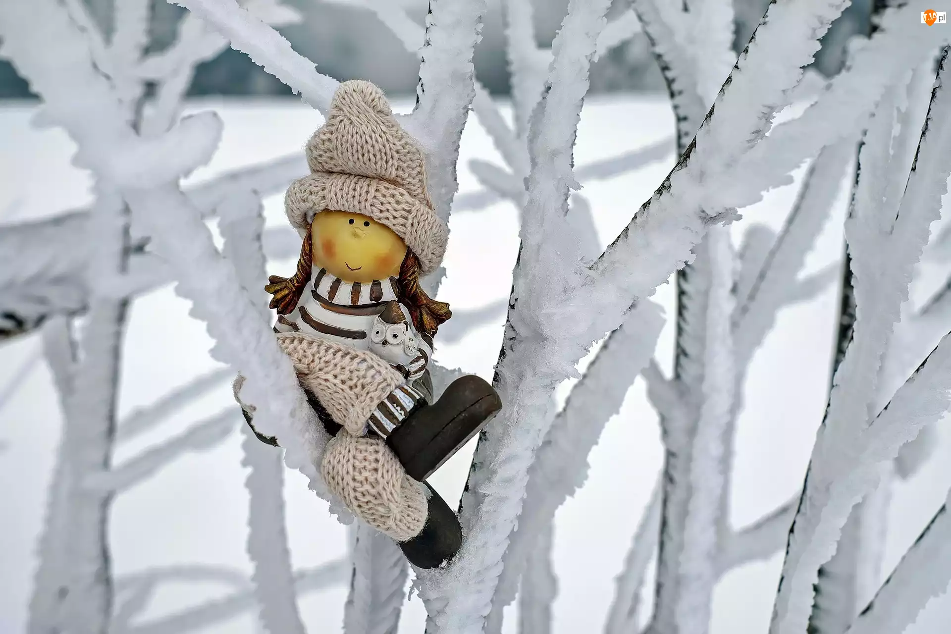Laleczka na ośnieżonych gałęziach