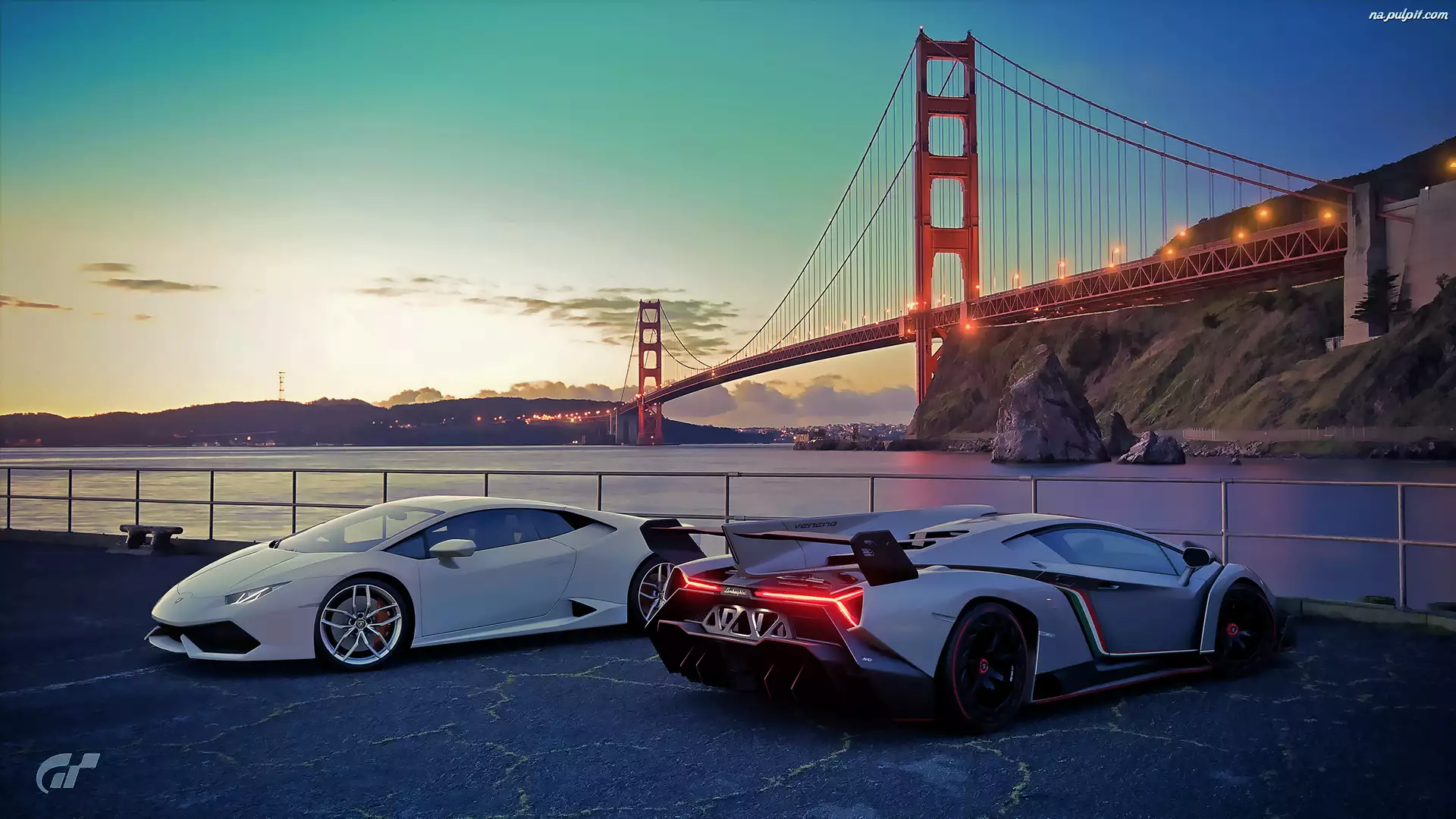 Lamborghini Veneno, Gry, Parking, Lamborghini Huracan, Most, Samochody, PC, XBOX, Nabrzeże, Sportowe, Wieczór, Gran Turismo, PS4