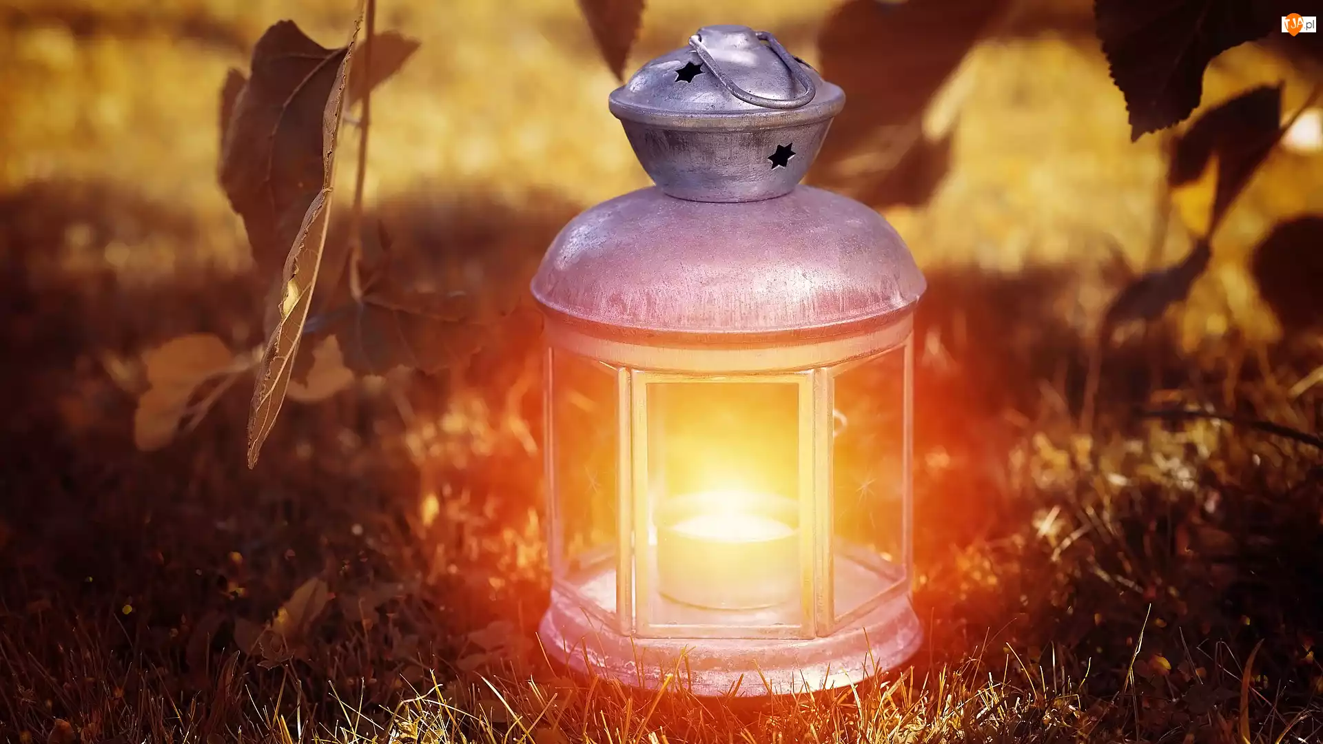 Światło, Lampion, Trawa, Liście