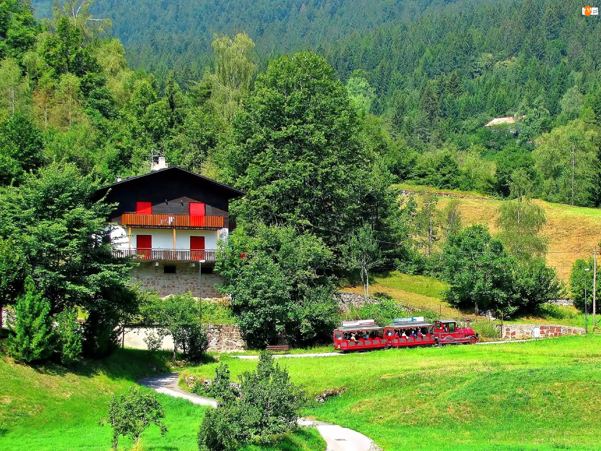 Dolomity, Góry, Dom, Andalo, Las, Ciuchcia