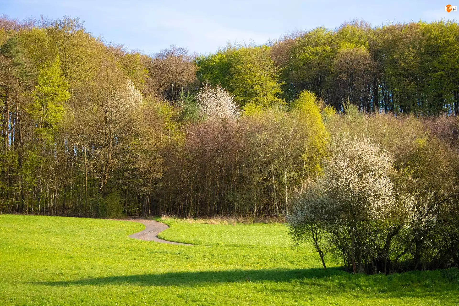 Las, Drzewa, Łaka, Wiosna, Ścieżka