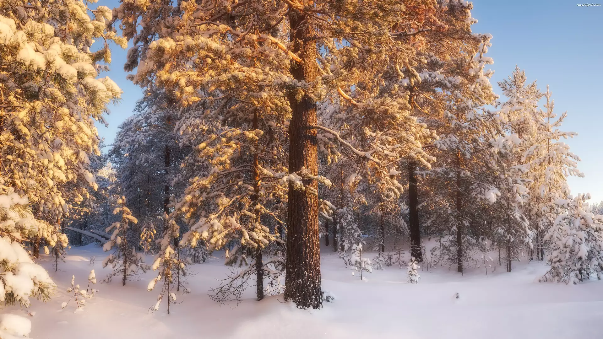 Las iglasty, Zima, Śnieg, Drzewa