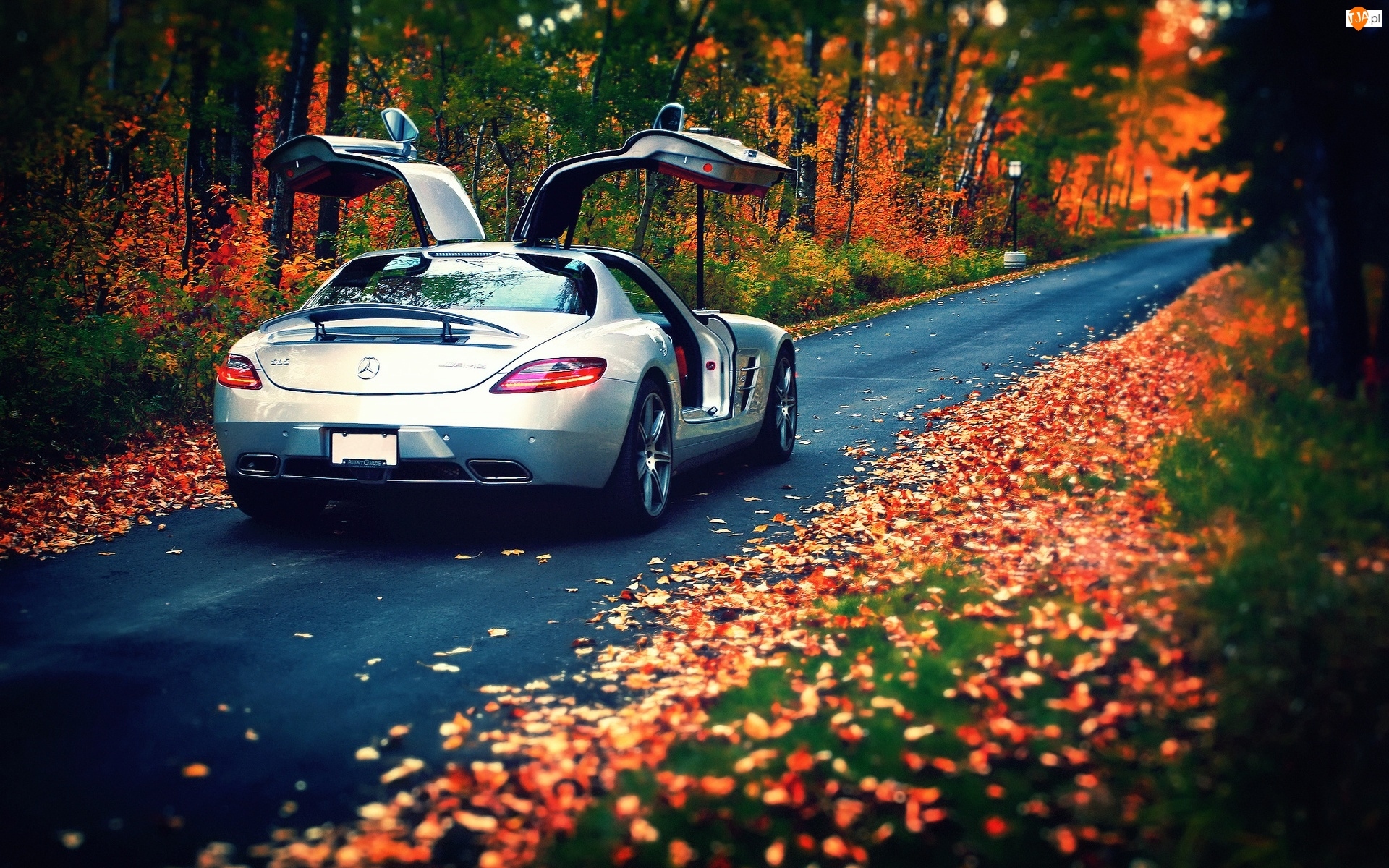 Las, Liście, Mercedes, Jesień, SLS, Droga