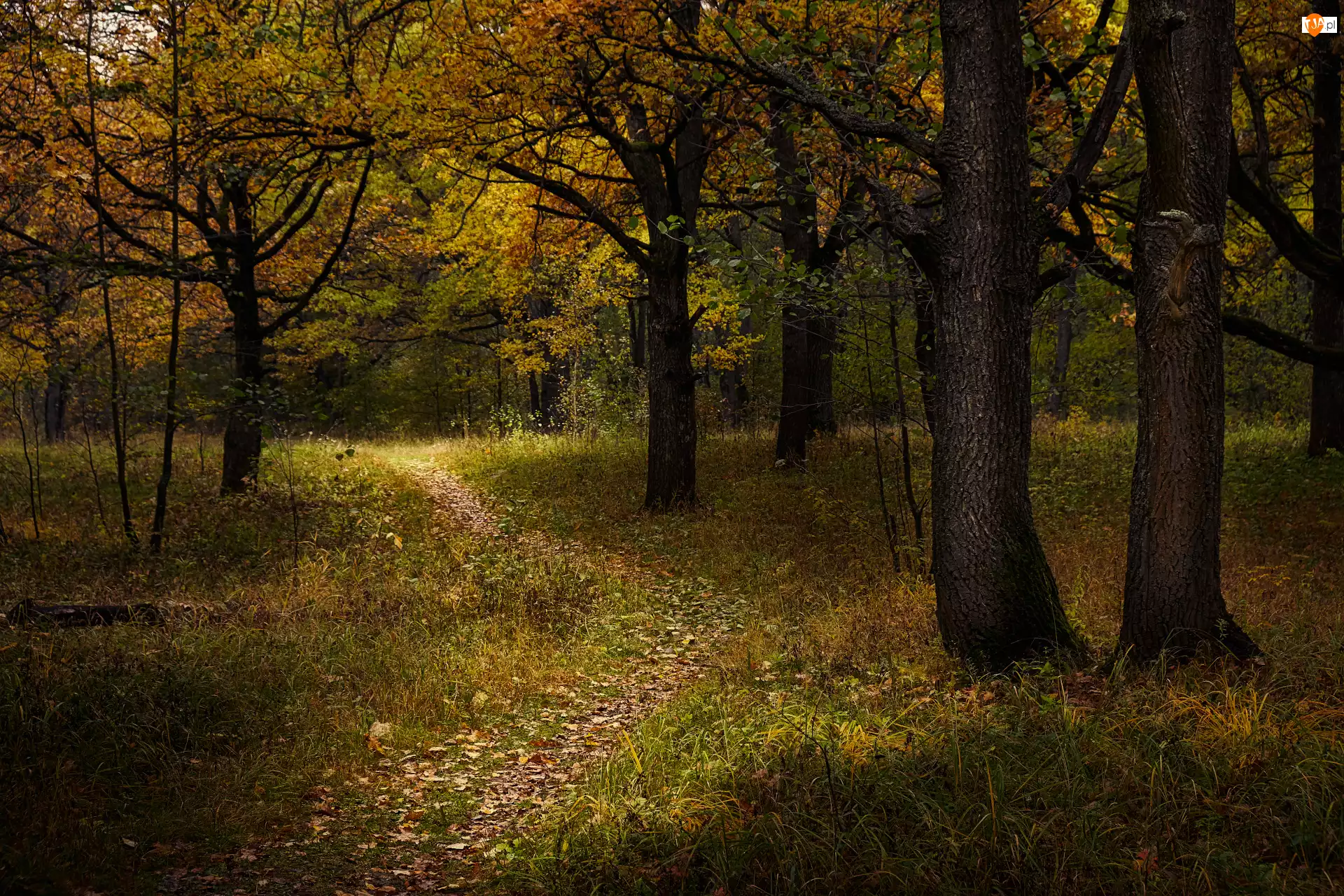 Las, Trawa, Drzewa, Jesienne, Ścieżka