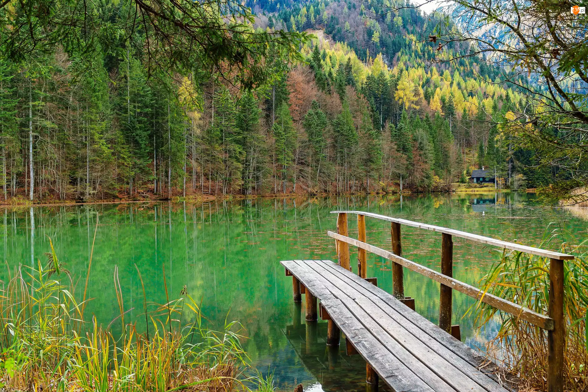 Lasy, Jesień, Pomost, Jezioro, Dom