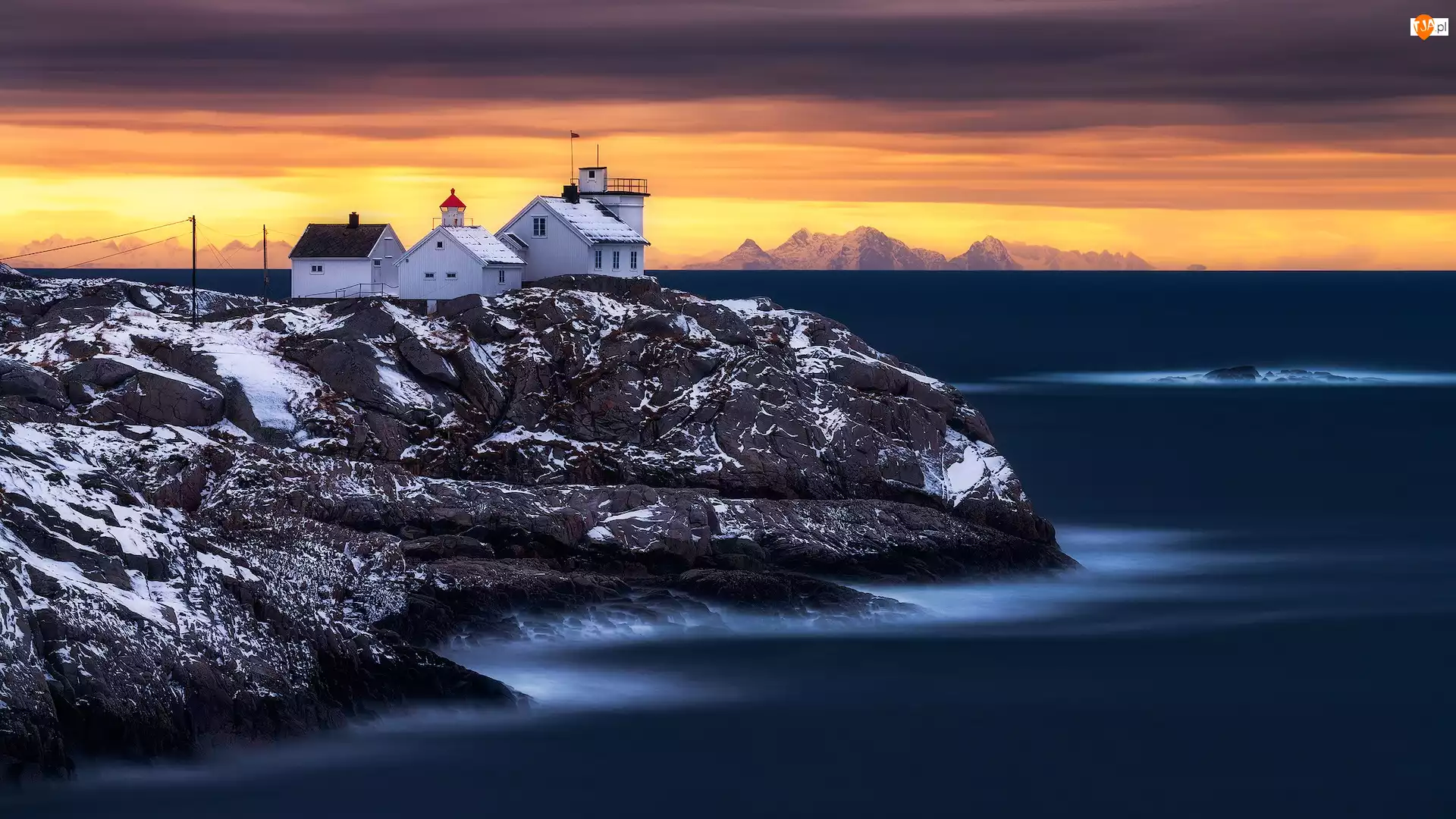 Lofoty, Norwegia, Wybrzeże, Skały, Morze, Latarnia morska