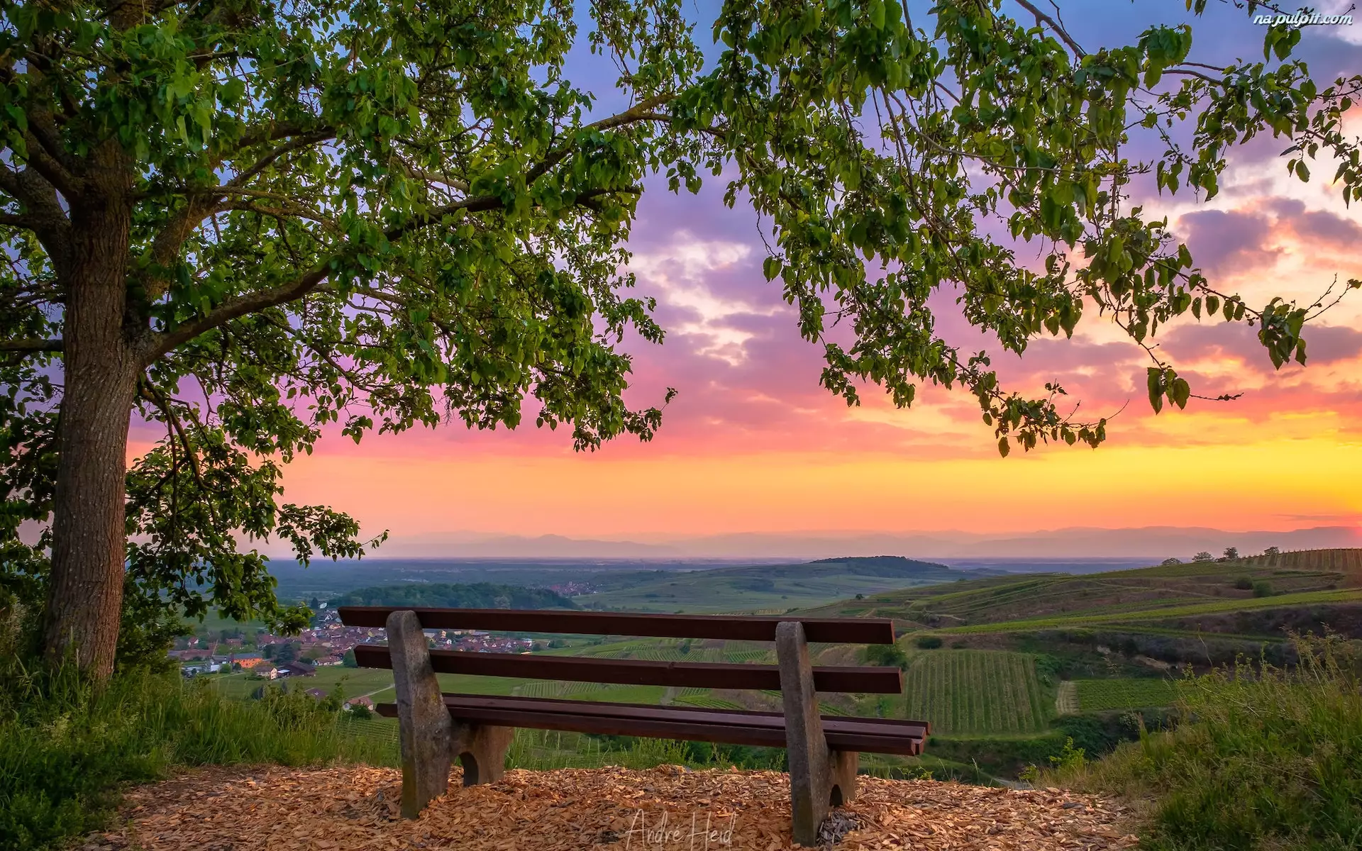 Kaiserstuhl, Wzgórza, Ławka, Niemcy, Drzewa, Badenia-Wirtembergia