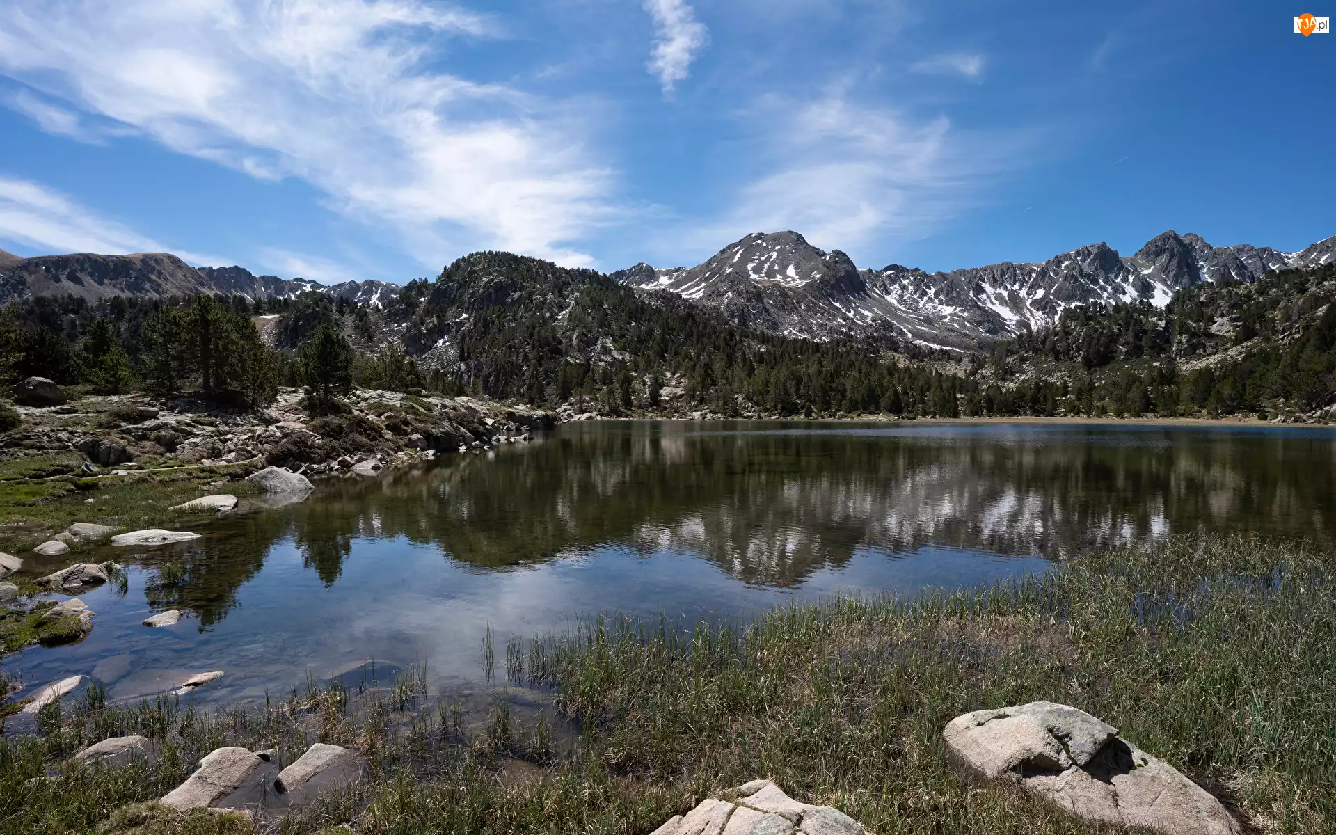 Pireneje, Góry, Odbicie, Andora, Kamienie, Jezioro, Śnieg