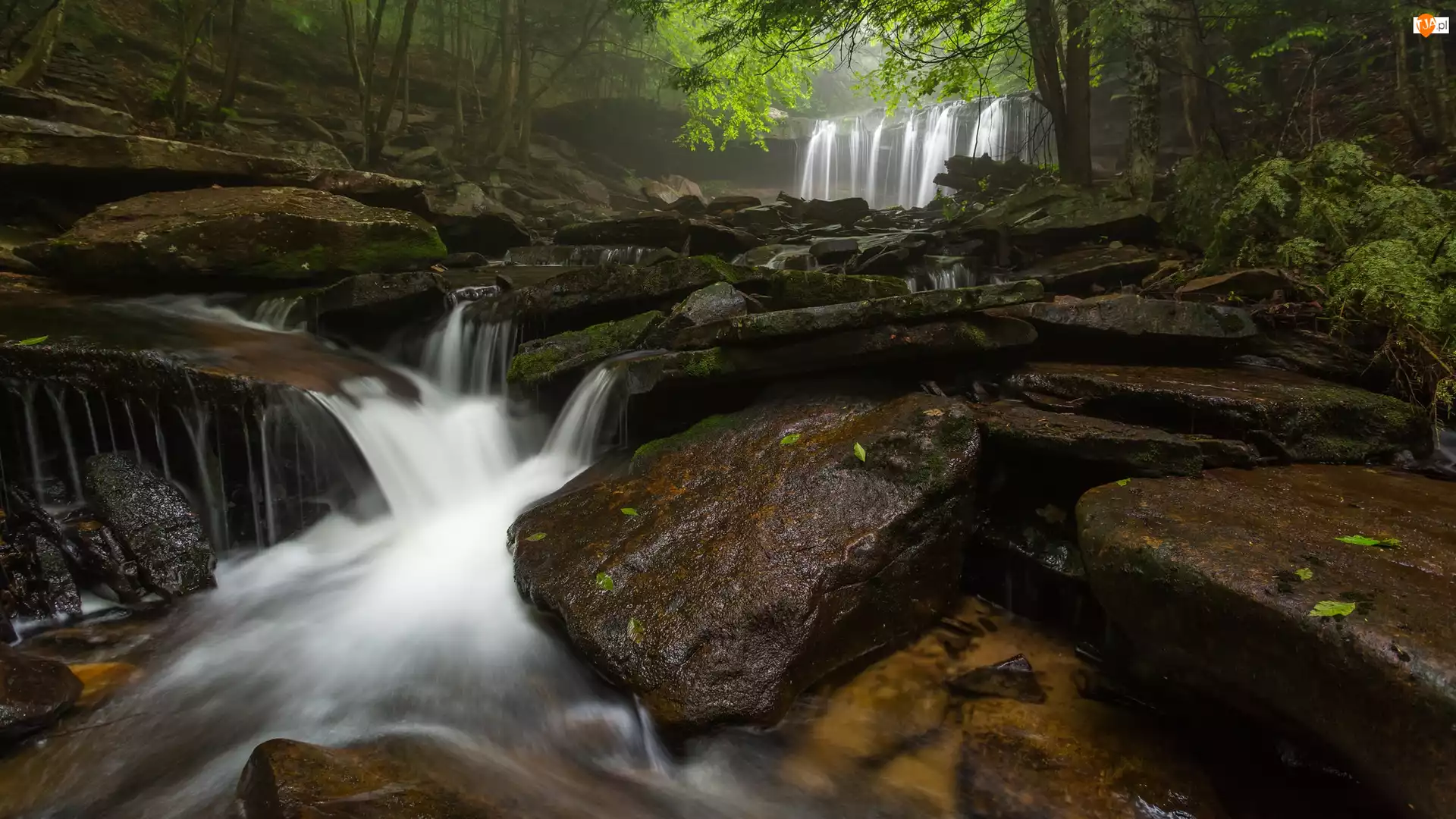 Potok Kitchen Creek, Wodospad Oneida Falls, Stan Pensylwania, Rzeka, Stany Zjednoczone, Kamienie, Park stanowy Ricketts Glen State Park, Las