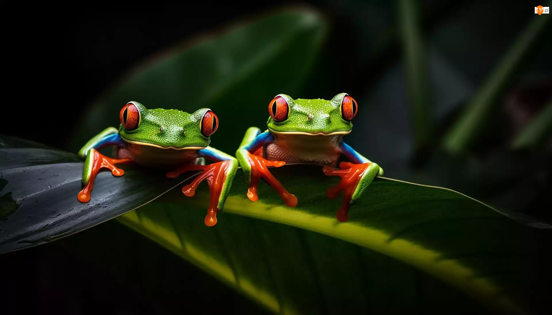 Liść, Tło, Żaby, Dwie, Ciemne