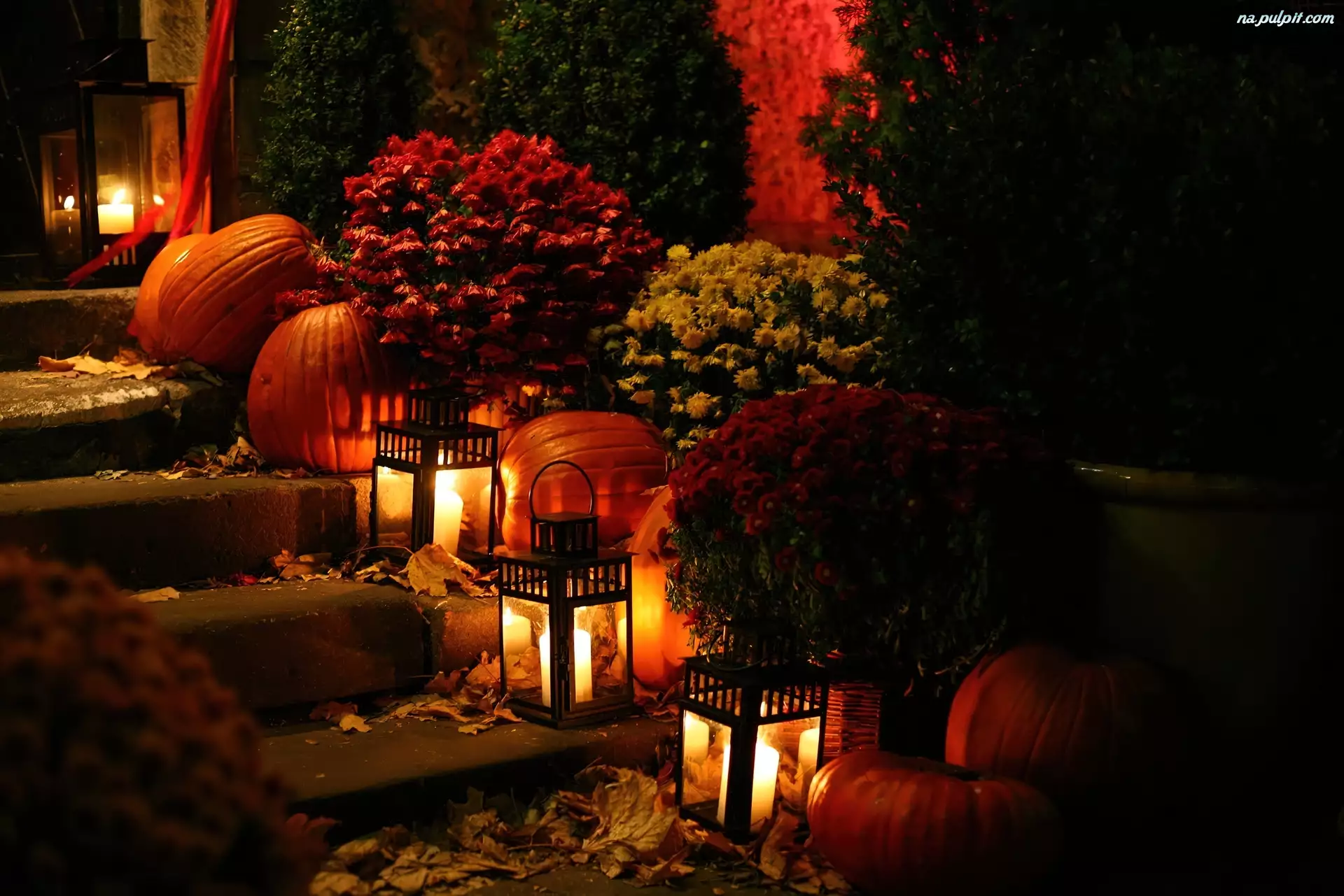 Liście, Dynie, Lampiony, Schody, Bukiety