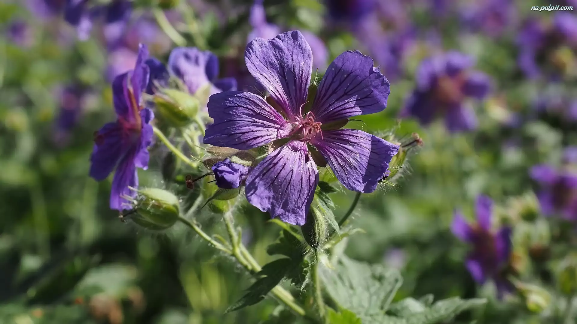 Liście, Kwiaty, Fioletowe, Bodziszek