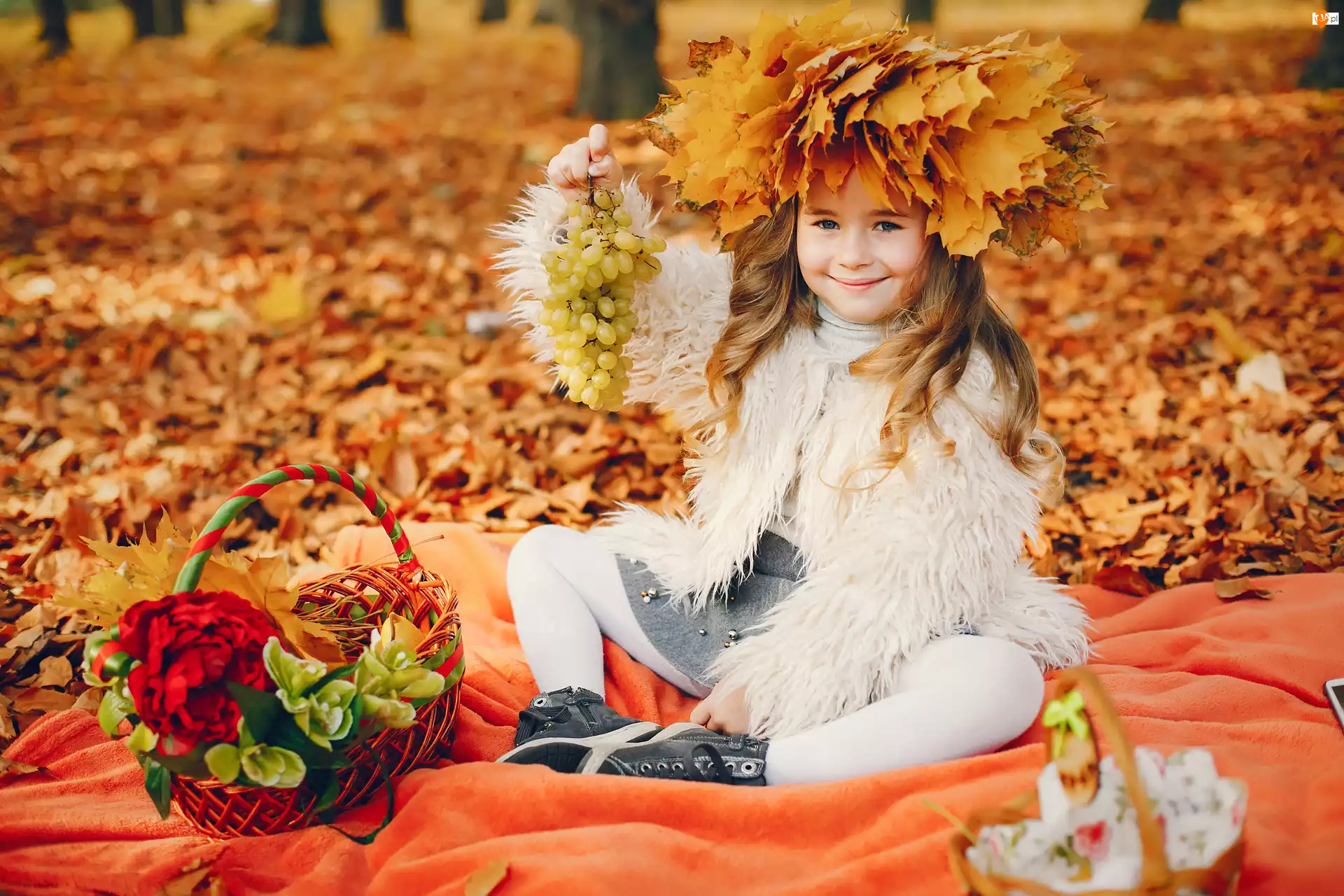 Liście, Winogrona, Dziewczynka, Jesień, Wianek