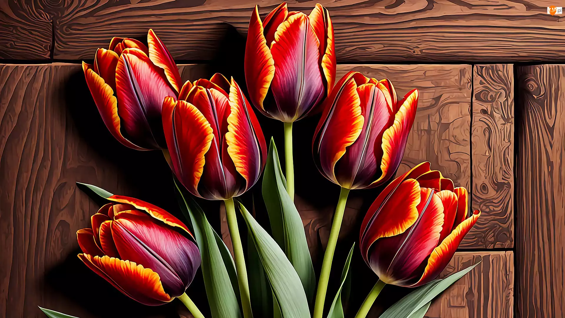 Listki, 2D, Tulipany, Czerwono-żółte, Deski
