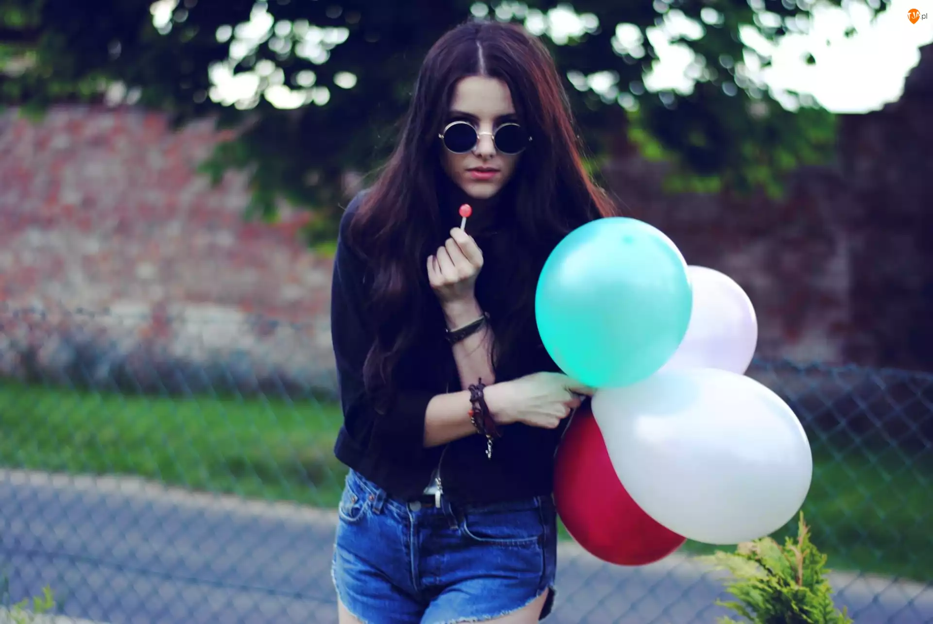 Lizak, Kobieta, Okulary, Brunetka, Balony