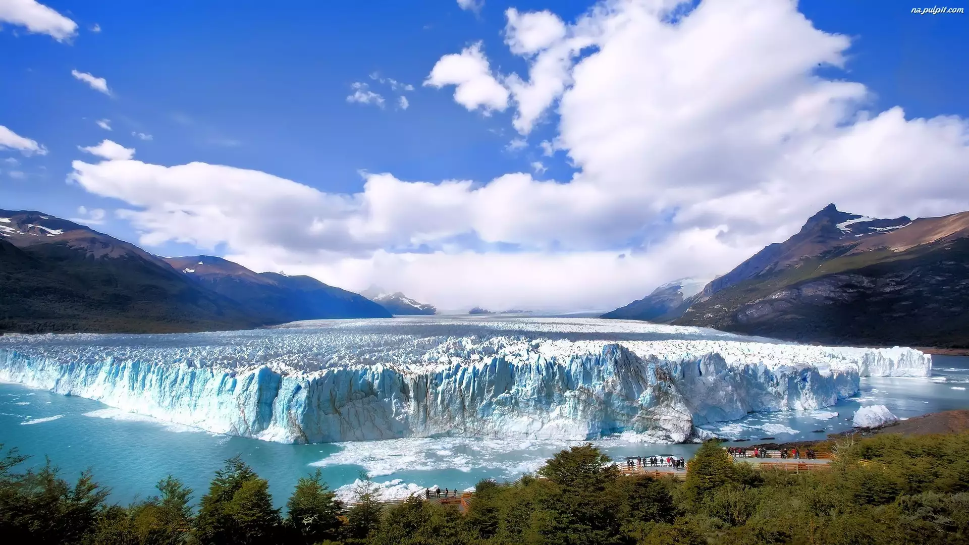 Lodowiec, Argentyna, Góry, Park Narodowy Los Glaciares, Perito Moreno, Drzewa