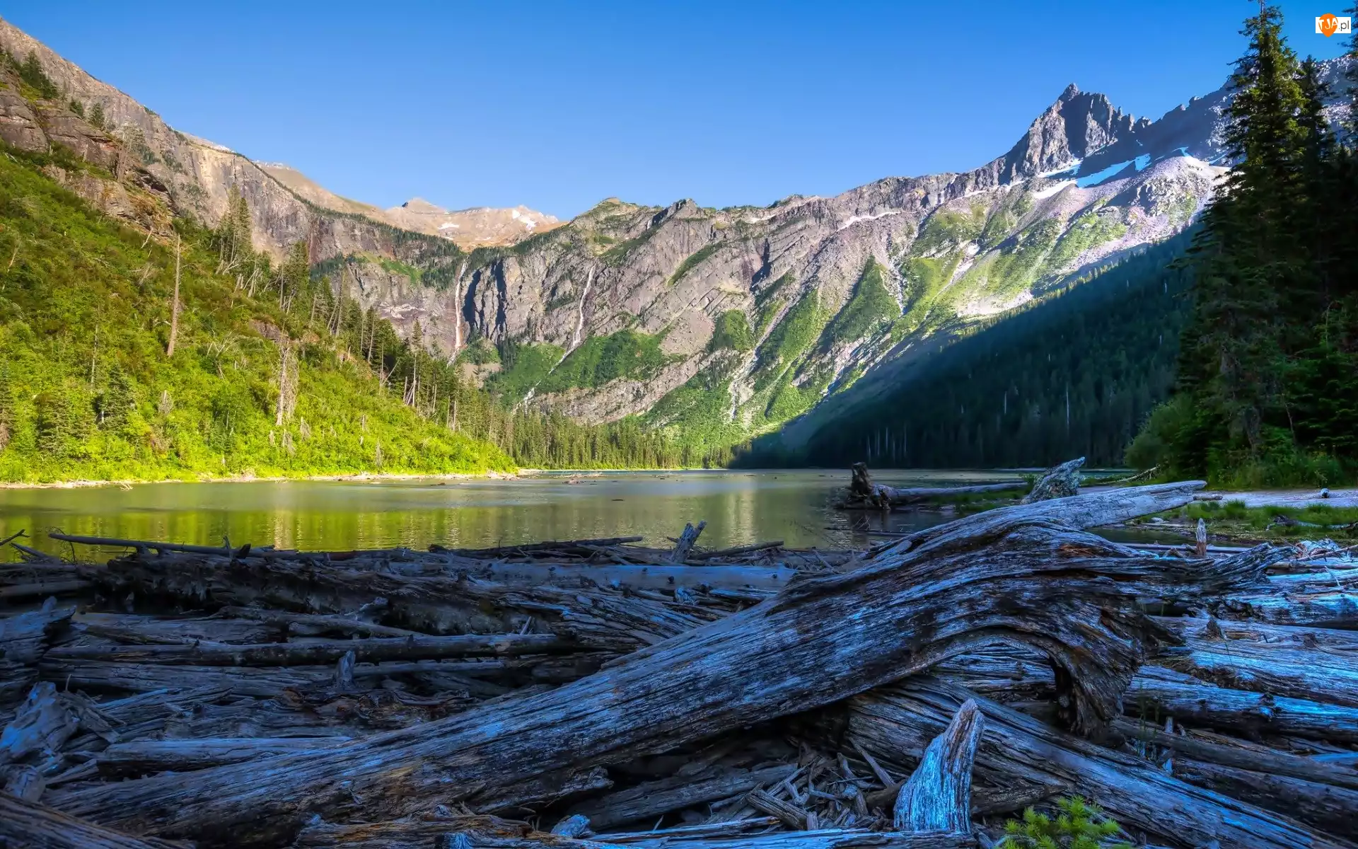Park Narodowy Glacier, Góry, Stany Zjednoczone, Kłody, Stan Montana, Jezioro Avalanche