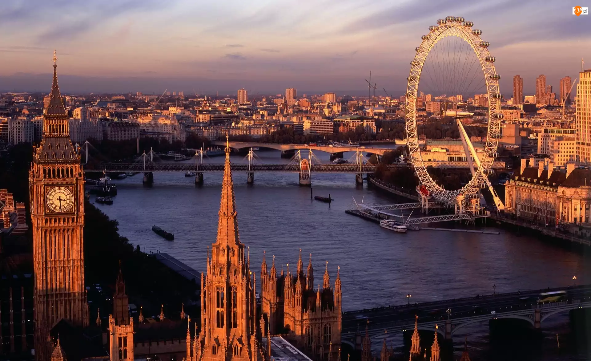 London Eye, Panorama, Londyn, Miasta, Big Ben