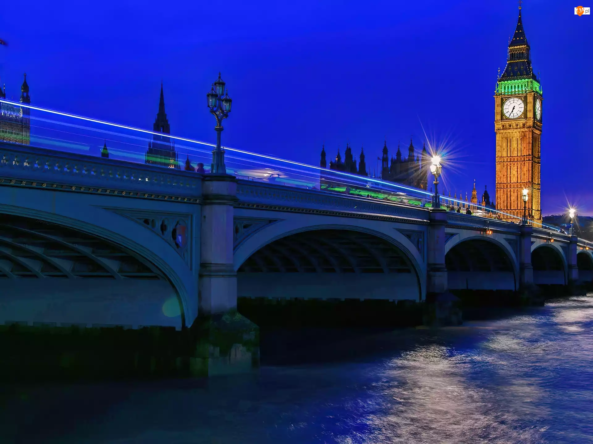 Big Ben, Noc, Londyn, Anglia, Most Westminsterski