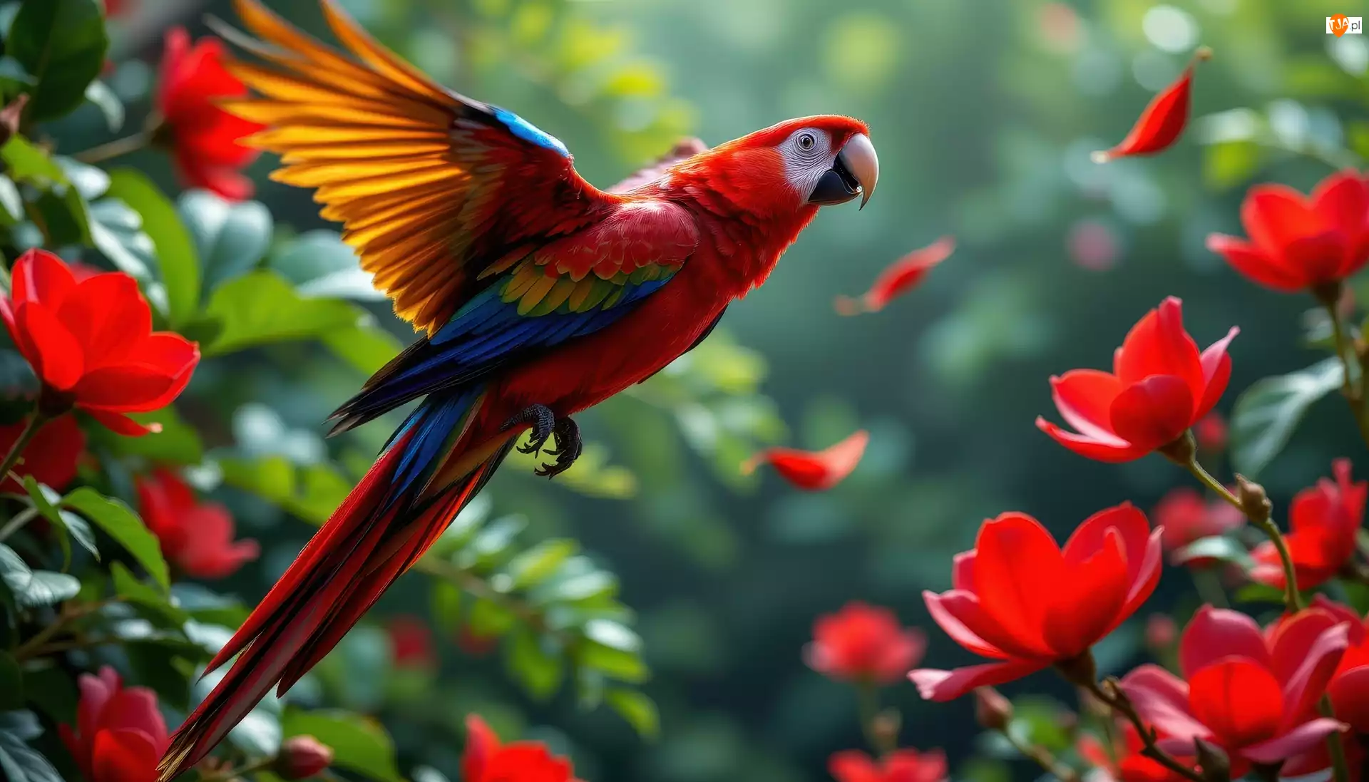 Lot, Grafika AI, Ara, Papuga, Kwiaty