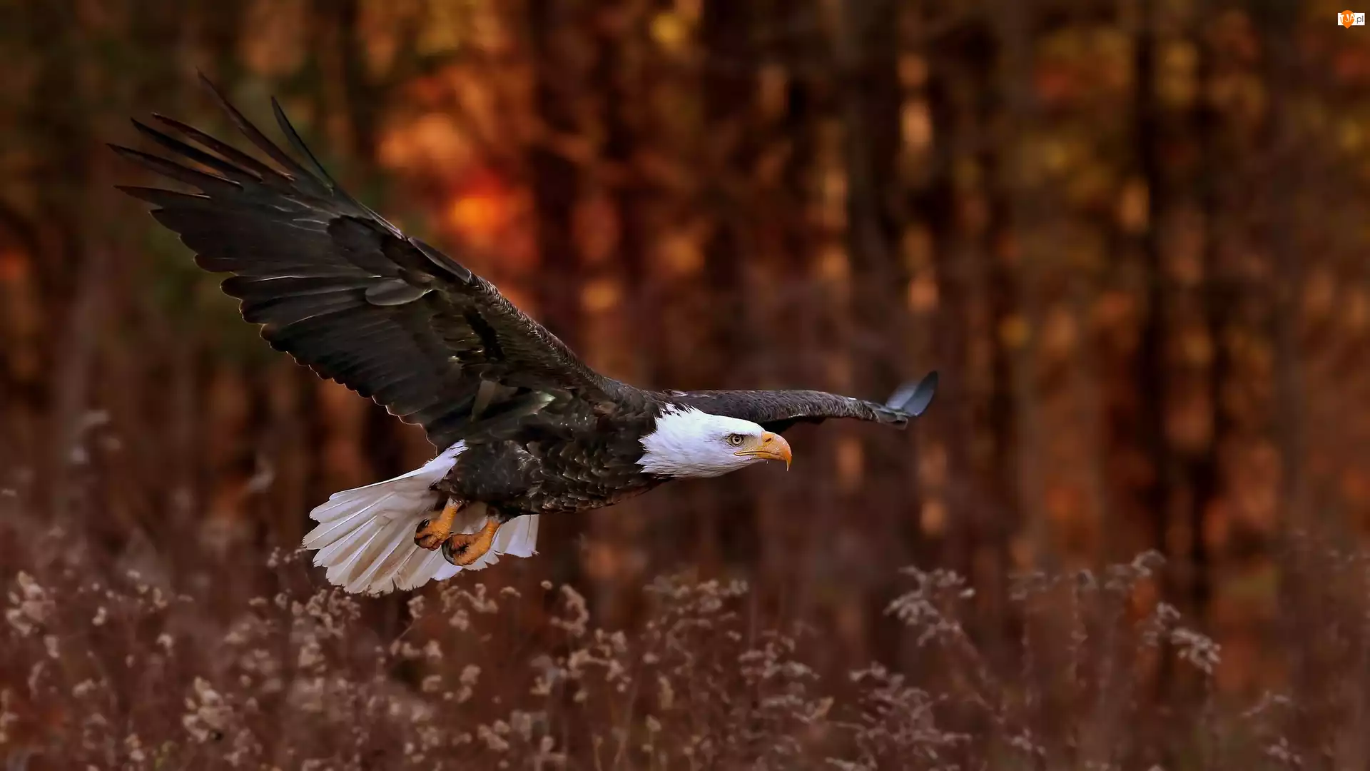 Las, Bielik amerykański, Lot, Trawy