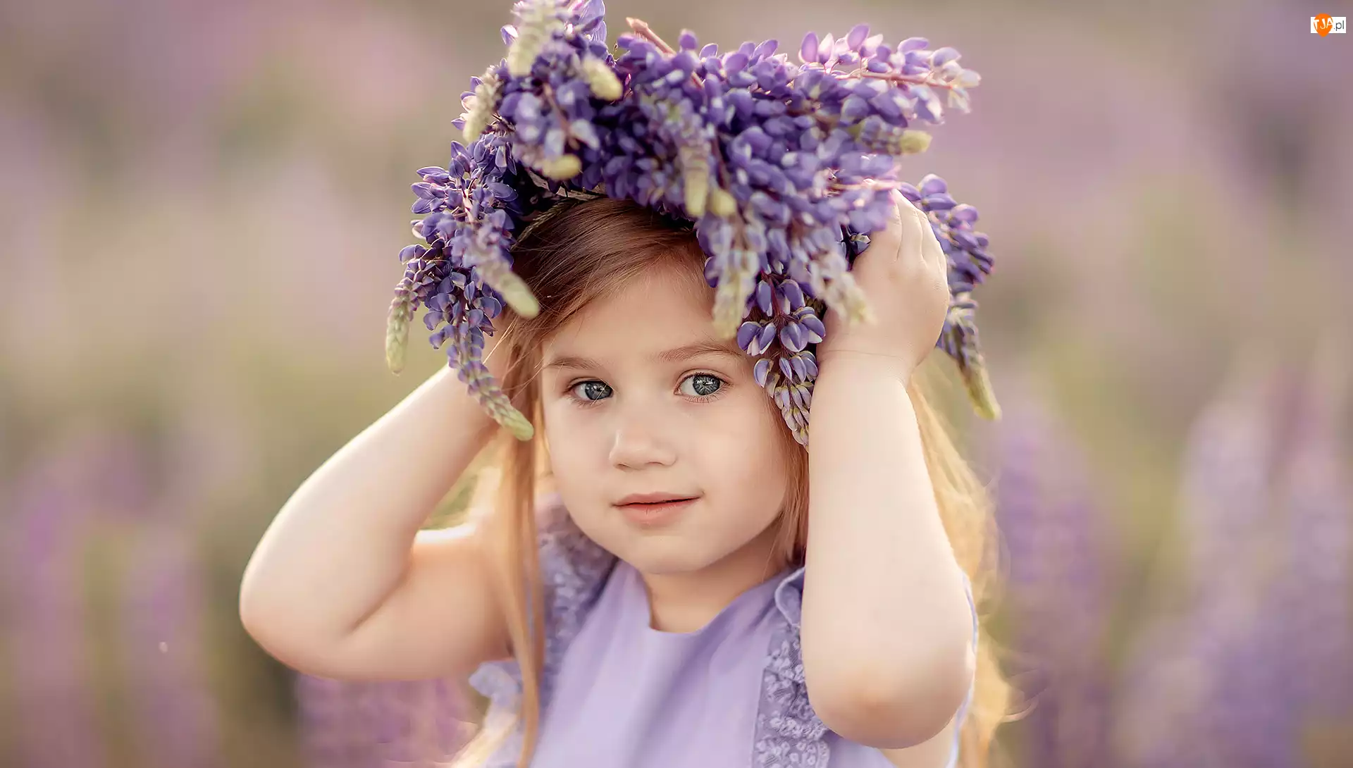 Łubin, Dziecko, Dziewczynka, Kwiaty