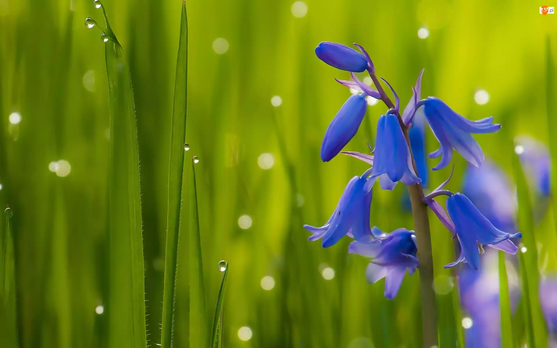 Makro, Dzwonek, Krople, Trawa