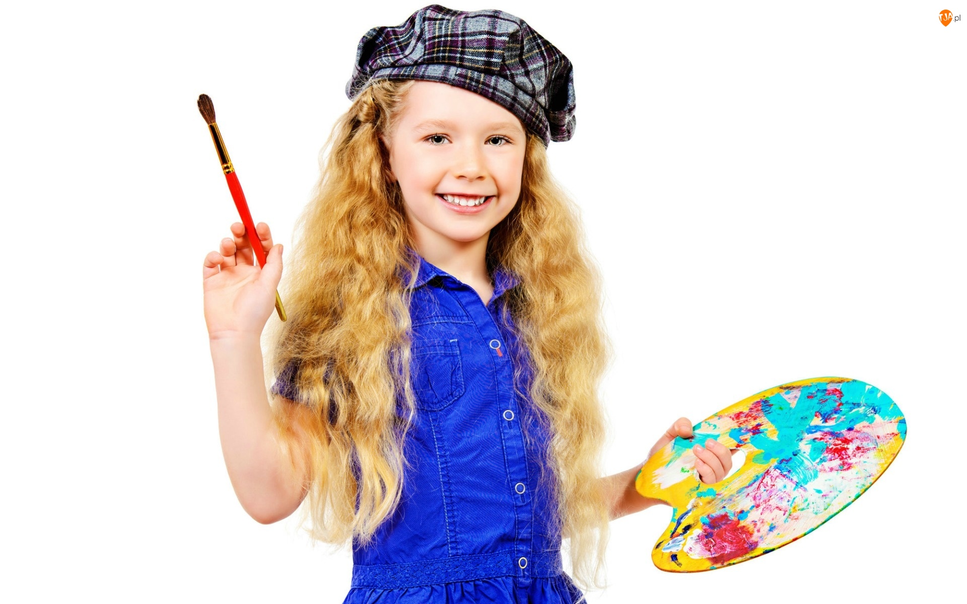 Malowanie, Uśmiechnięta, Farby, Dziewczynka, Pędzel
