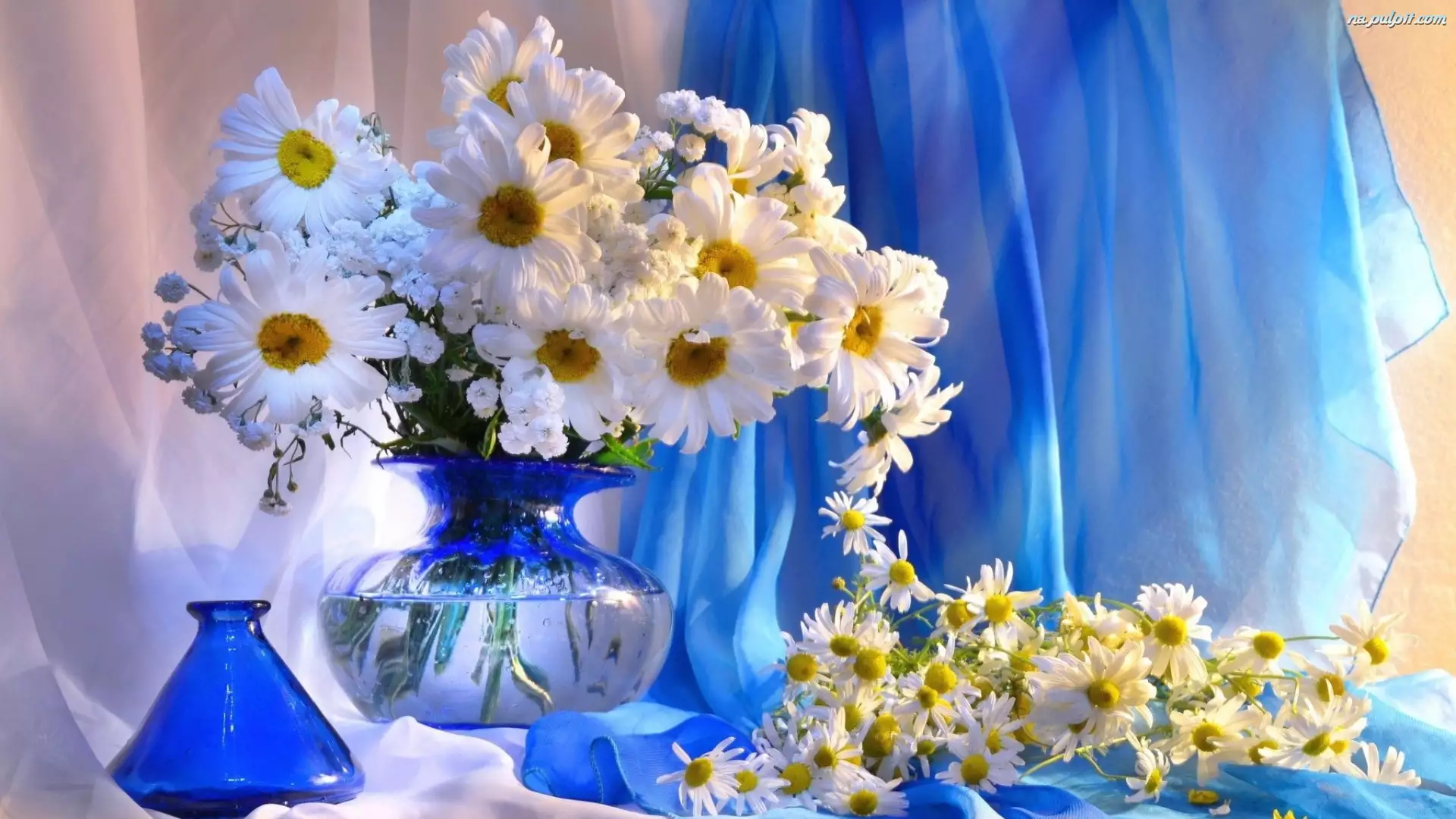 Margerytki, Tkanina, Bukiet, Kompozycja, Białe, W