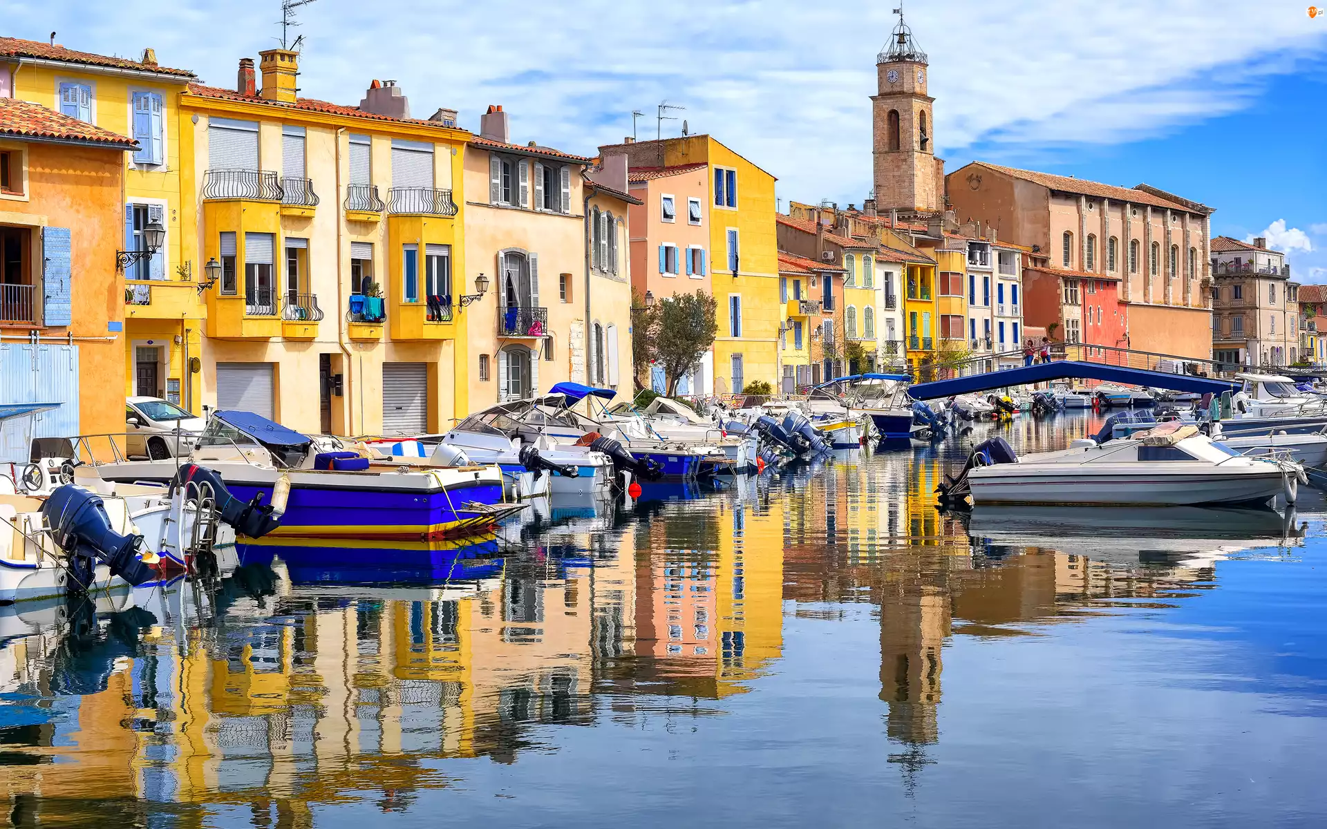 Przystań, Domy, Martigues, Francja, Motorówki