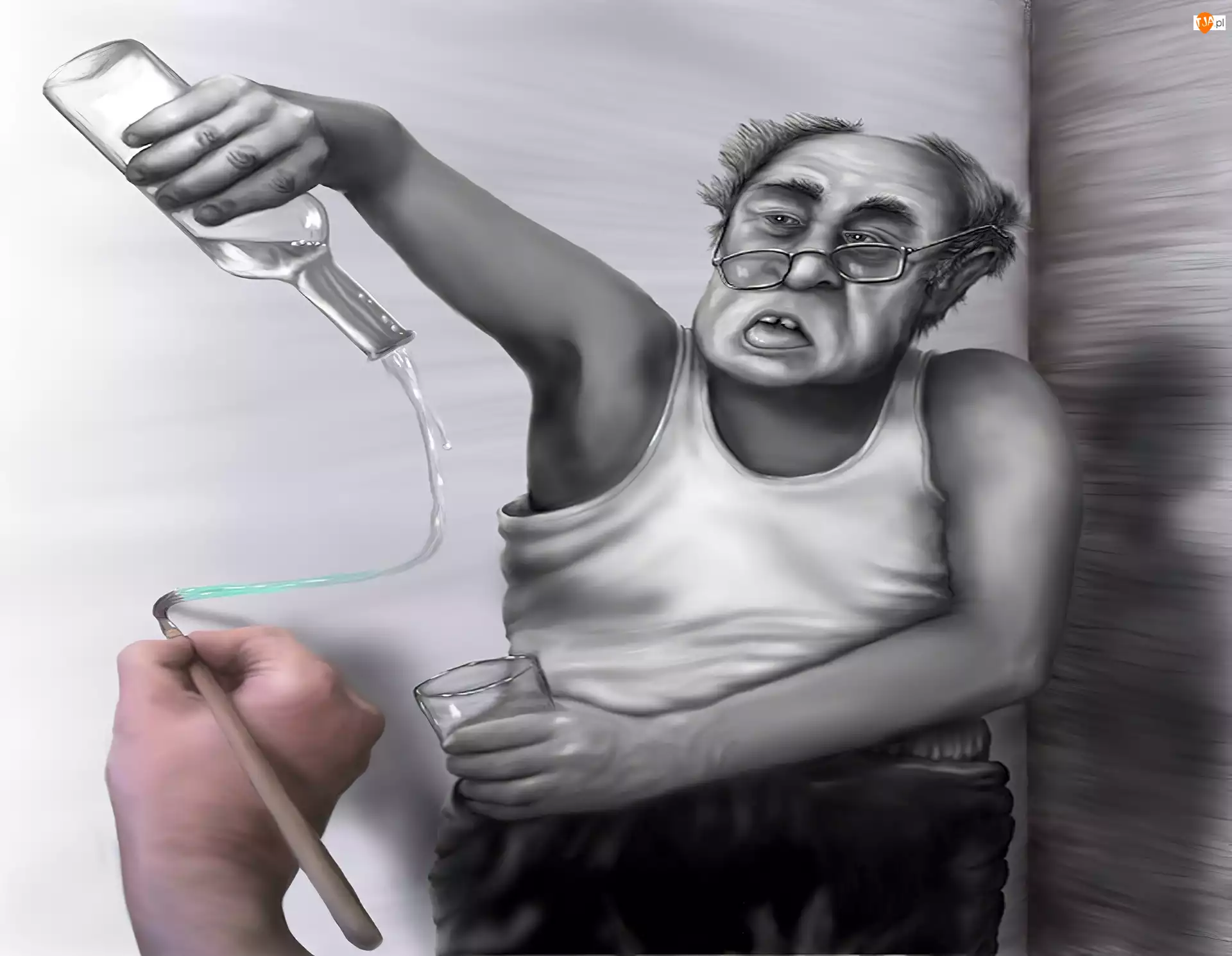Rysunek, Mężczyzna, Butelka, Alkohol