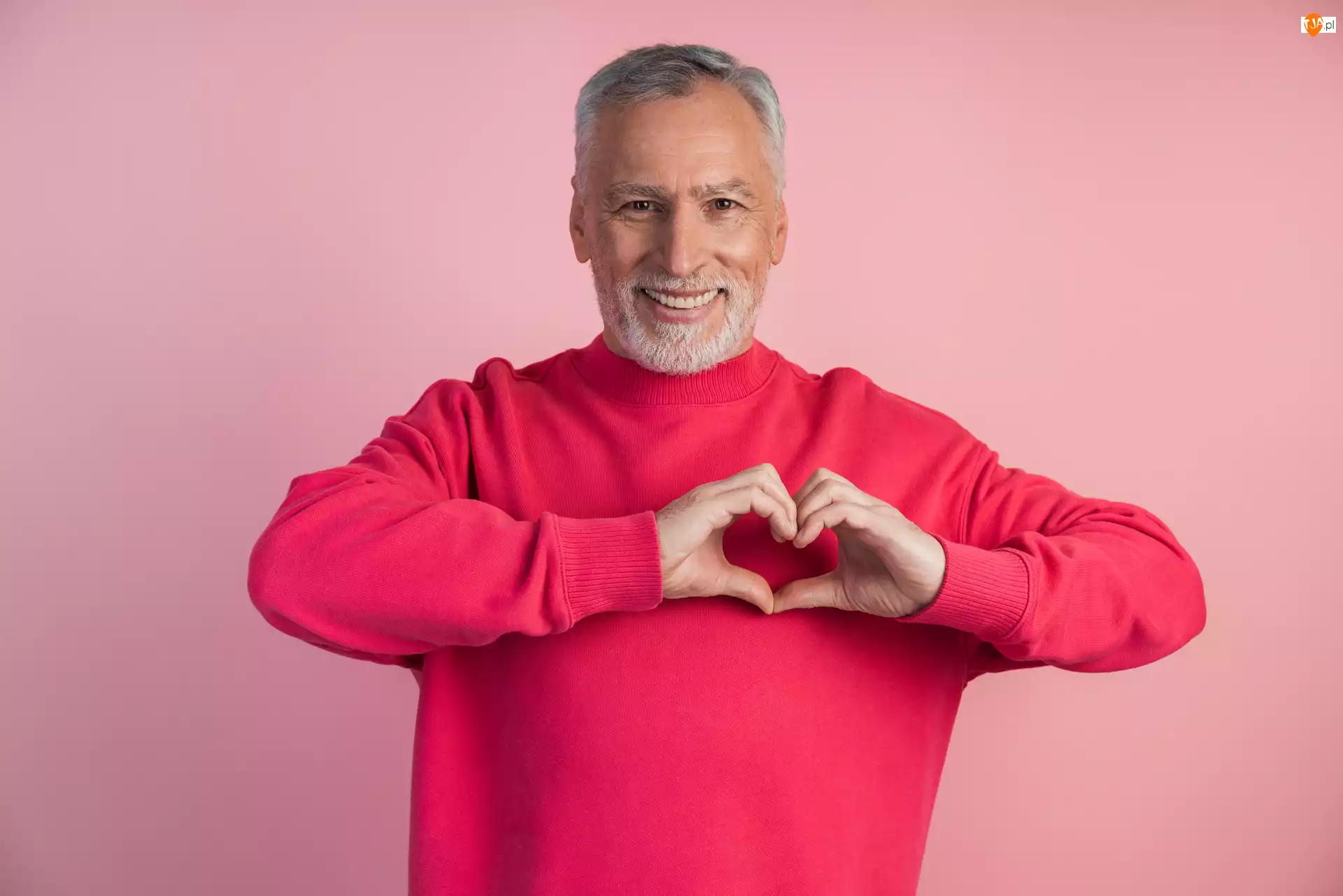 Sweter, Mężczyzna, Uśmiech, Czerwony