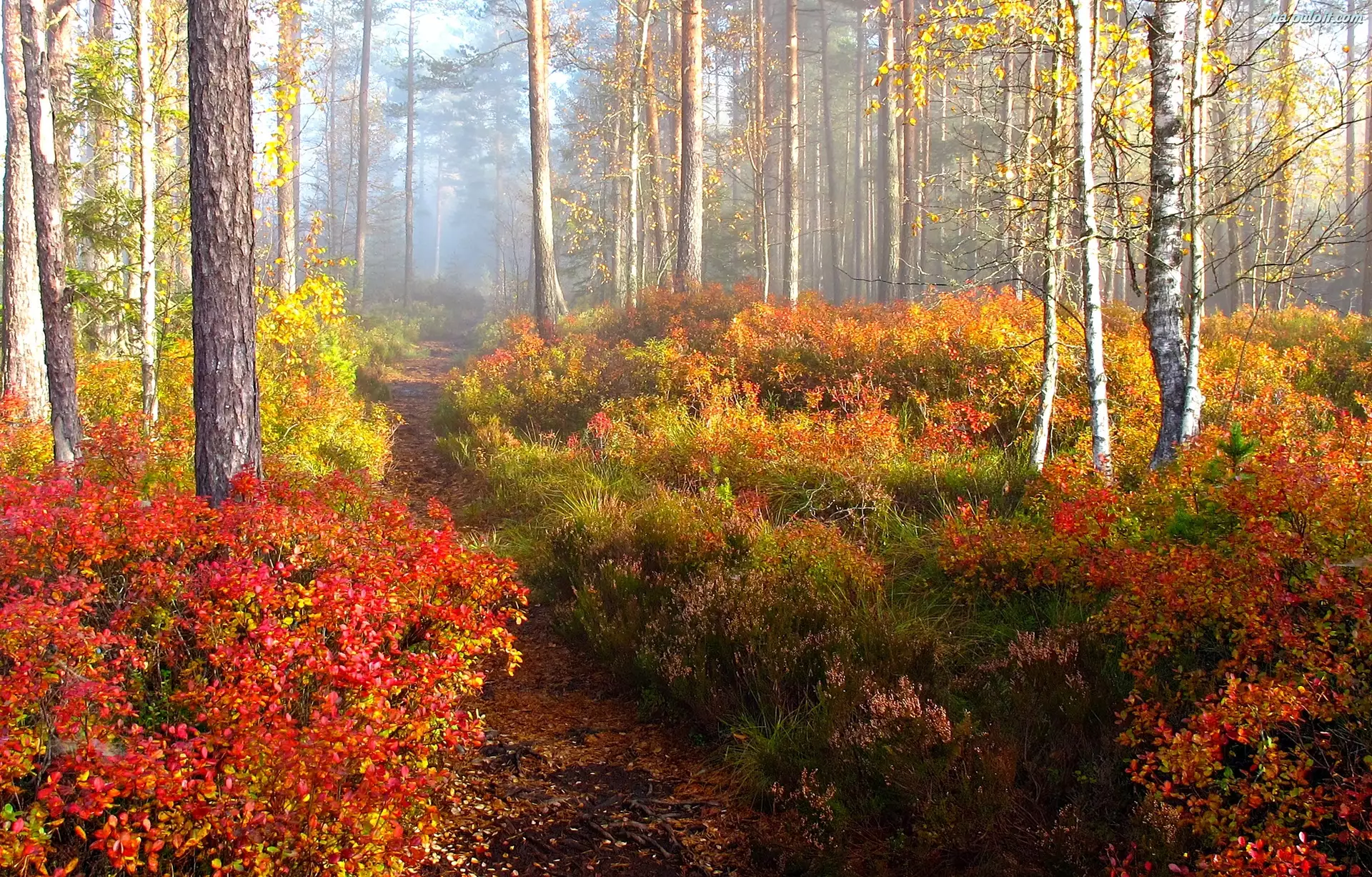 Mgła, Jesień, Ścieżka, Las, Poranek